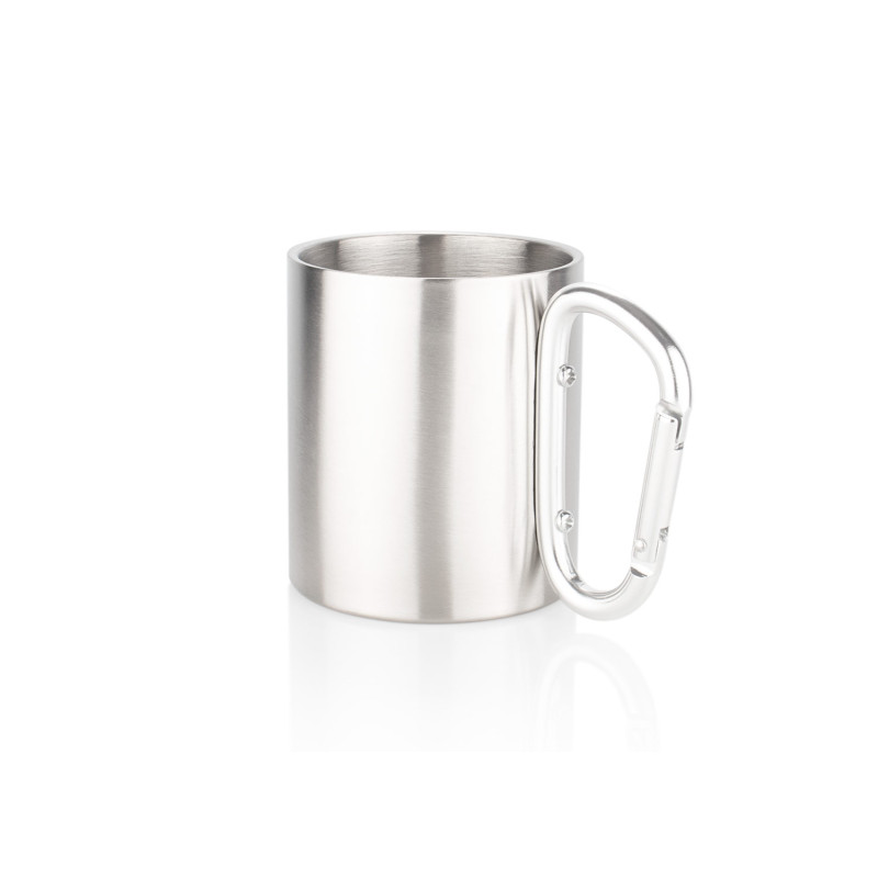 Mug con asa tipo gancho carabinero, ideal para actividades al aire libre. Su diseño práctico permite sujetarlo fácilmente a mochilas o correas, facilitando su transporte. Funcional y resistente, es perfecto para acompañarte en tus aventuras o en el día a día. Capacidad: 300 ml / 10 Oz.