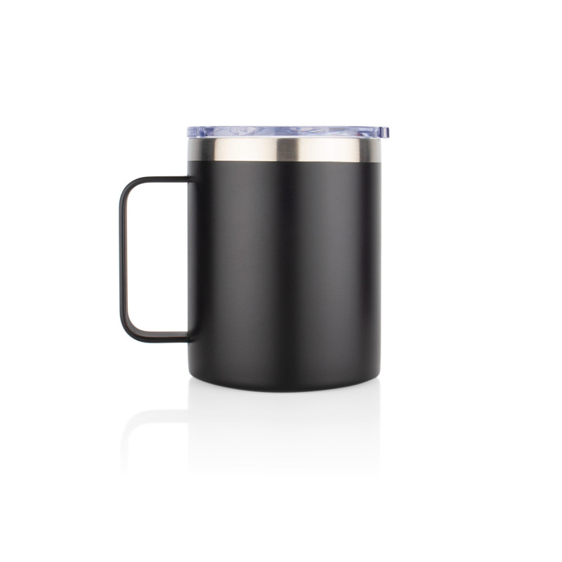 Mug térmico de doble pared con tapa de presión y boquilla con seguro corredizo. Diseñado para conservar la temperatura de tus bebidas, su tapa transparente se ajusta bajo presión y cuenta con un mecanismo de cierre deslizante para mayor seguridad. Capacidad: 380 ml / 13 Oz.