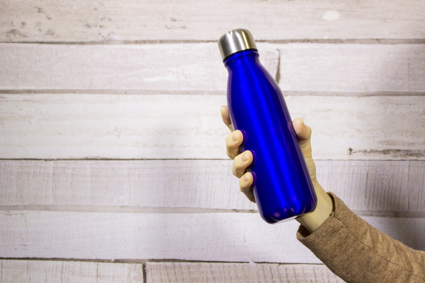Ø 6 (base de la botella) x 22,5 cm. Capacidad 550 ml. Aluminio. Botellas de aluminio con diferentes colores en su exterior. Tapa a rosca de color plata
