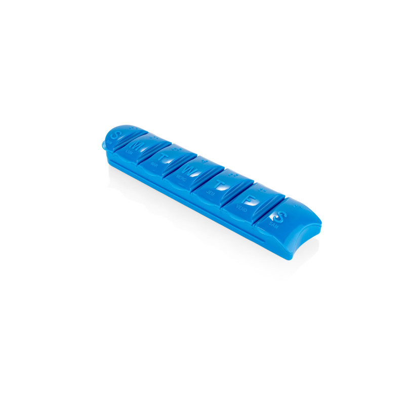 Botella organizadora con pastillero integrado, ideal para quienes necesitan llevar hidratación y medicación de forma práctica. Fabricada en plástico transparente, incluye un pastillero (3,5 X 15,5 X 2,1) removible con compartimientos para los 7 días de la semana. La tapa tiene cierre giratorio y también funciona como vaso (6,2 X Ø 7,3), lo que facilita el consumo de agua y medicamentos. Además, la botella cuenta con soportes en el cuerpo que permiten mantenerla fija en posición horizontal, evitando que ruede. Capacidad: 750 ml / 25 Oz.