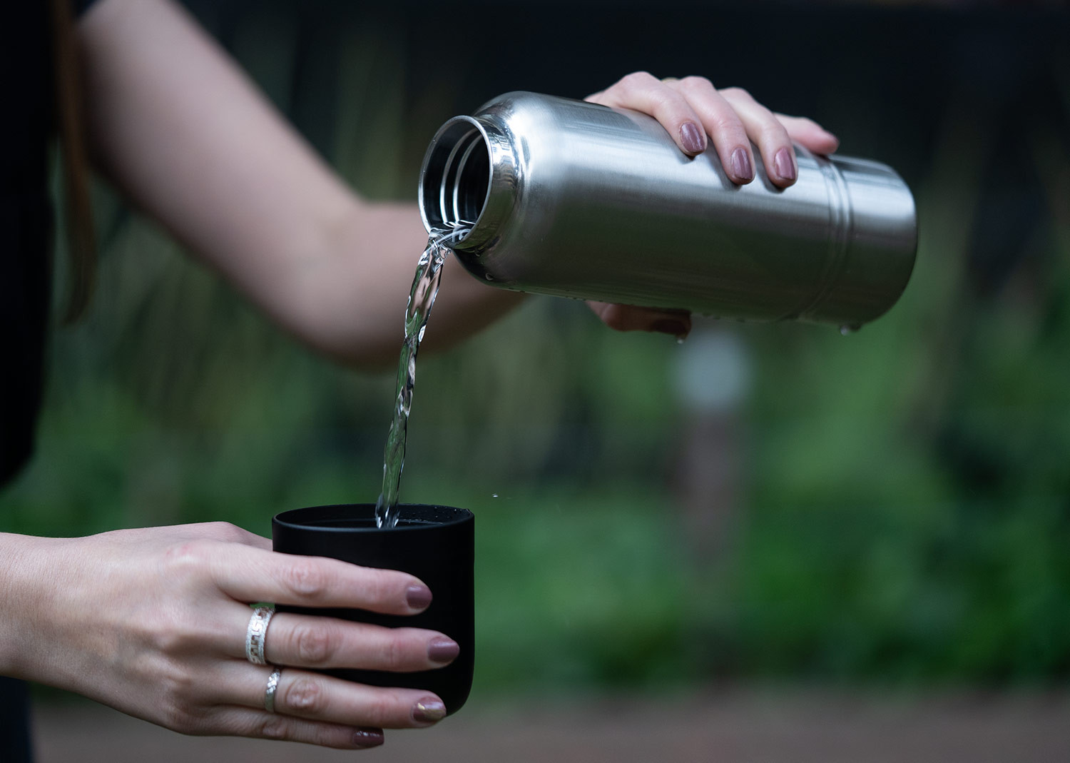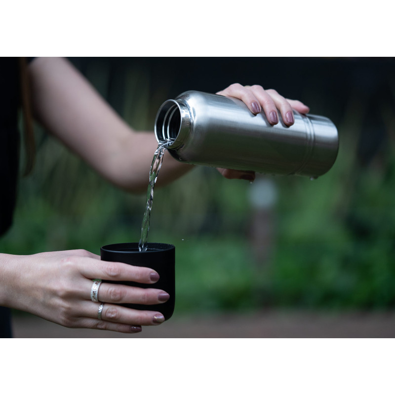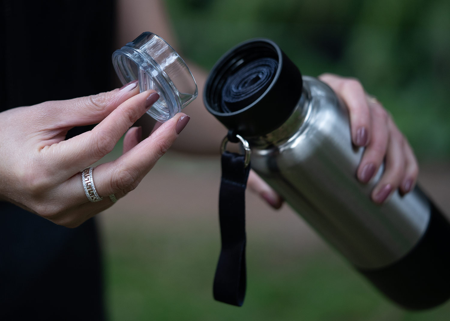 Botella Vacuum. Cuerpo de acero inoxidable de doble pared al vacío. Tapa de plástico con función de almacenamiento y cordón de 2 tamaños. Base de plástico extraíble con función de taza. Capacidad: 500 ml / 17 Oz.