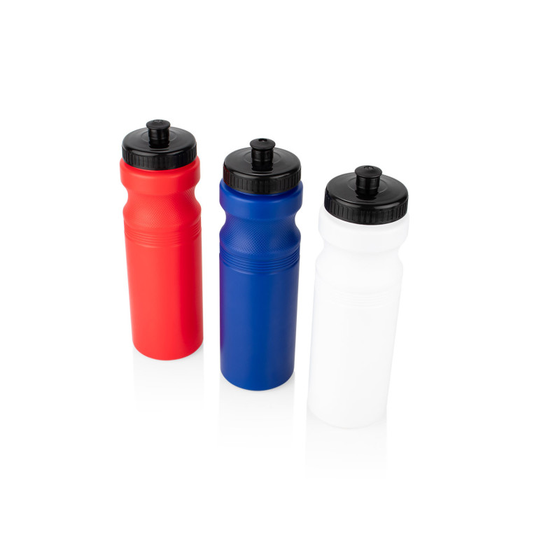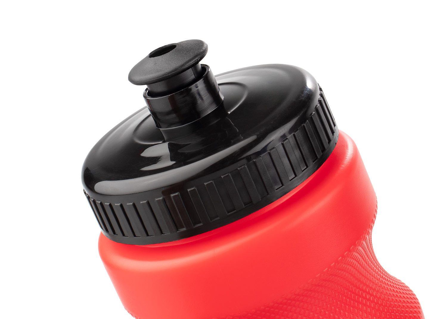 Botella deportiva con tapa de cierre giratorio y boquilla que funciona bajo presión, ideal para mantenerse hidratado durante actividades físicas. Su diseño incluye textura en el agarre que mejora la sujeción y comodidad al usarla. Práctica y funcional para llevar al gimnasio, entrenamientos, salidas al aire libre o como carimañola en la bicicleta, gracias a su tamaño y forma compatibles con los portabotellas estándar. Capacidad: 850 ml / 29 Oz.
