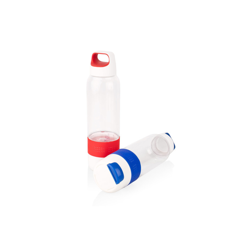 Botella deportiva fabricada en RPET con tapa de plástico de cierre giratorio. Incluye una toalla deportiva (78 X 21,4) en su interior, alojada en un compartimento inferior que también funciona como holder para celular, con sistema de cierre giratorio. Además, cuenta con una banda texturizada en el cuerpo de la botella que mejora el agarre durante su uso. Ideal para entrenamientos y actividades al aire libre. Capacidad: 500 ml / 17 Oz.