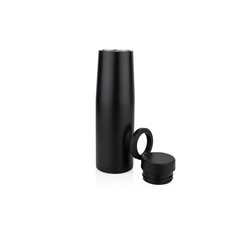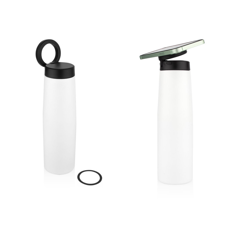 Termo con tapa de cierre giratorio, tecnología MagSafe (Ø 5,6) y doble pared de acero inoxidable. Su tapa permite colocar el celular en posición horizontal o vertical gracias al soporte magnético integrado. Capacidad: 540 ml / 18 Oz.