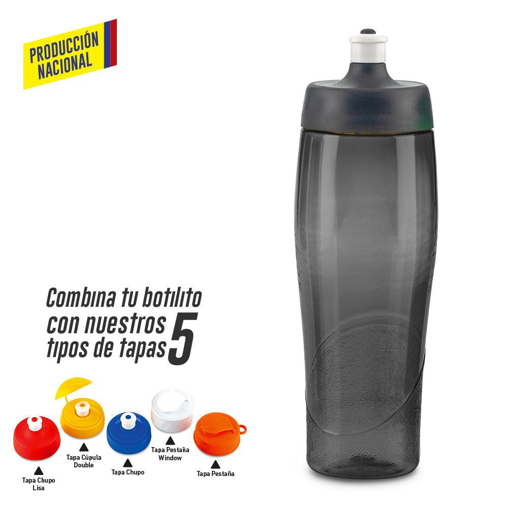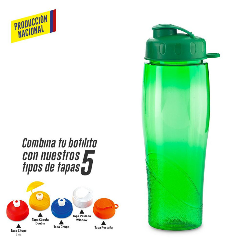 Botilito en PET: Libre de BPA, atóxico 100%, reciclable y reutilizable. Apto para uso en bebidas frías únicamente. No lavar con agua caliente. Opcional tapa chupo, tapa pestaña o tapa cúpula.
