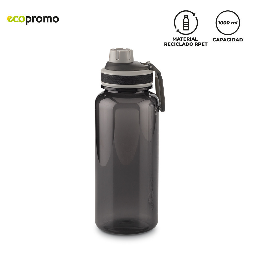 Botilito plástico reciclado (PCTG). Libre de BPA y BPS. Con medidor de ML y OZ. Tapa plástica de rosca.