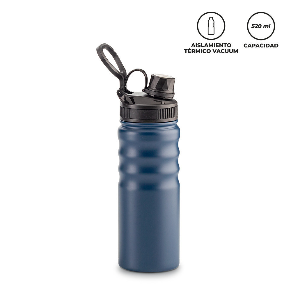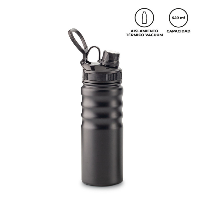 Botilito metálico doble pared vacuum en acero inoxidable, con aislamiento térmico que mantiene la bebida fría o caliente hasta 6h aprox (puede variar dependiendo de las condiciones climáticas). Tapa rosca y manija para cargar. Empaque caja individual.