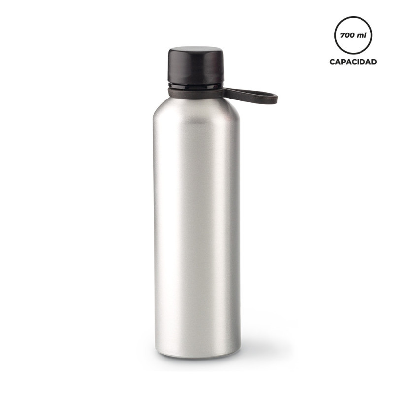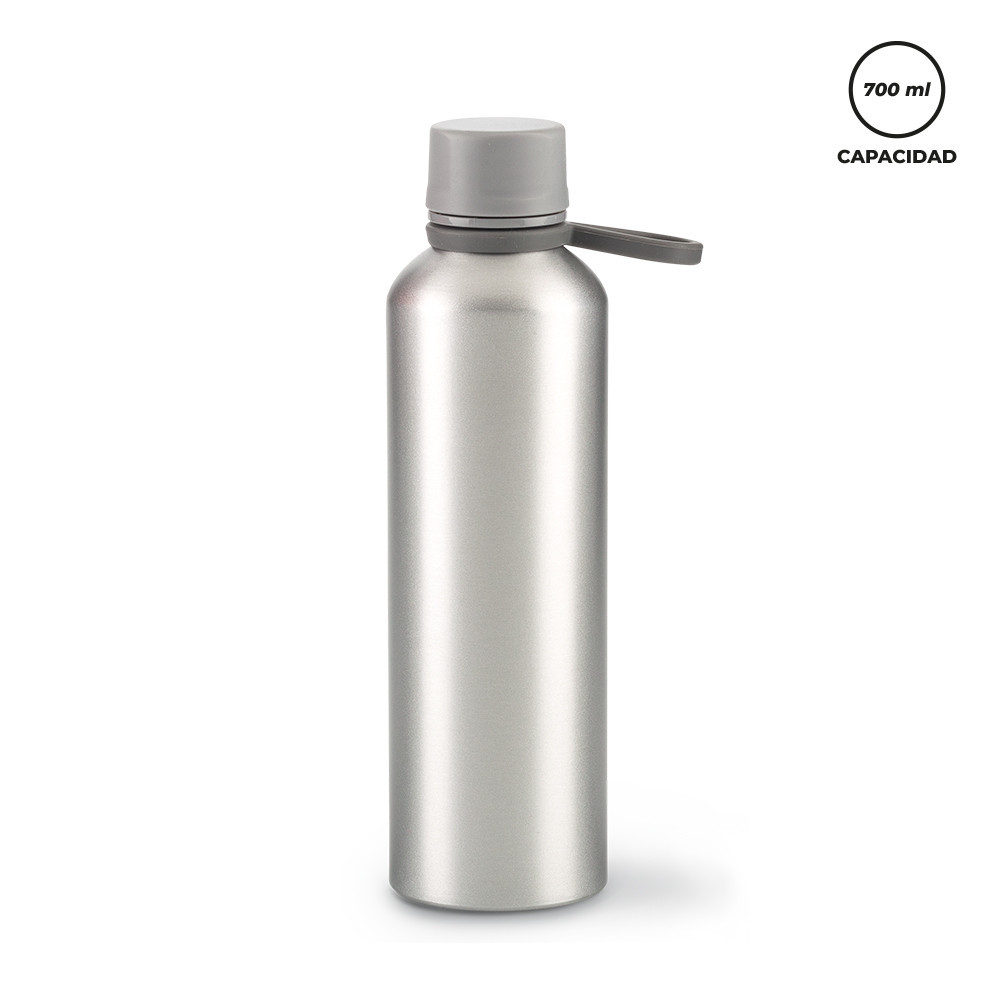 Botilito metálico en acero inoxidable. Tapa rosca plástica. Empaque caja individual.