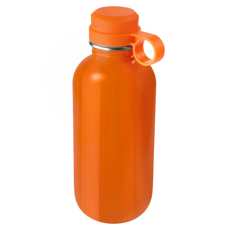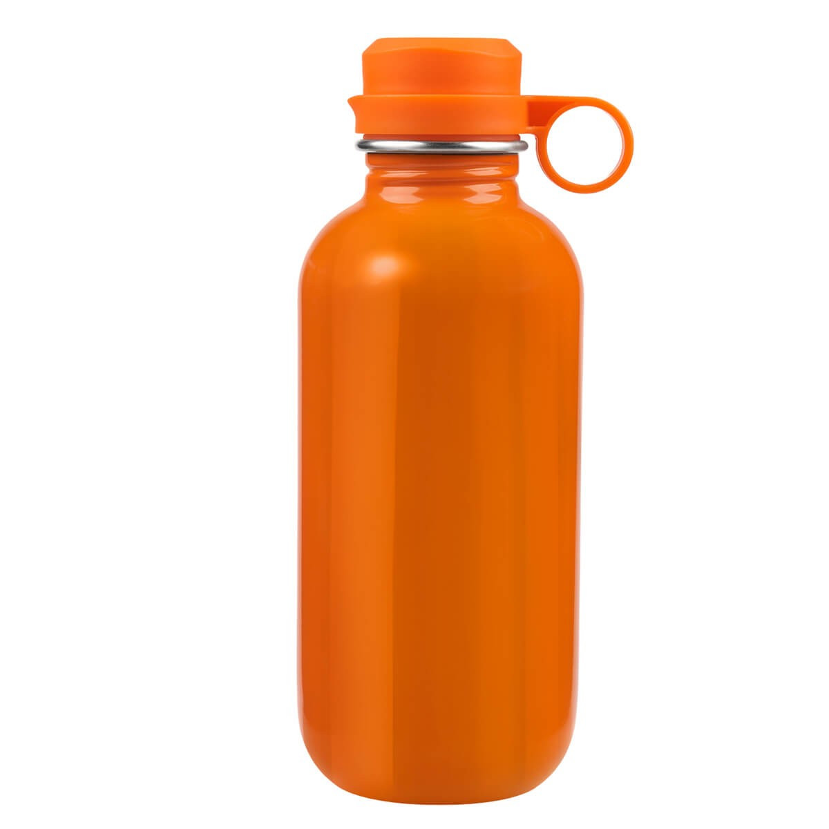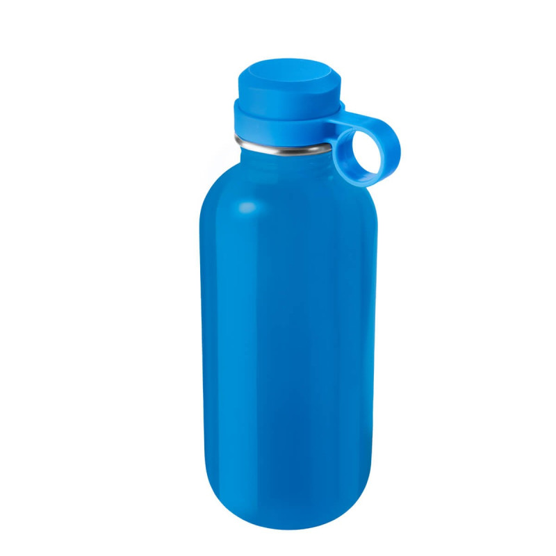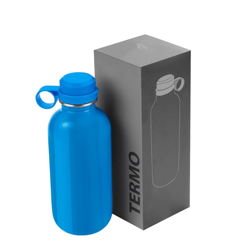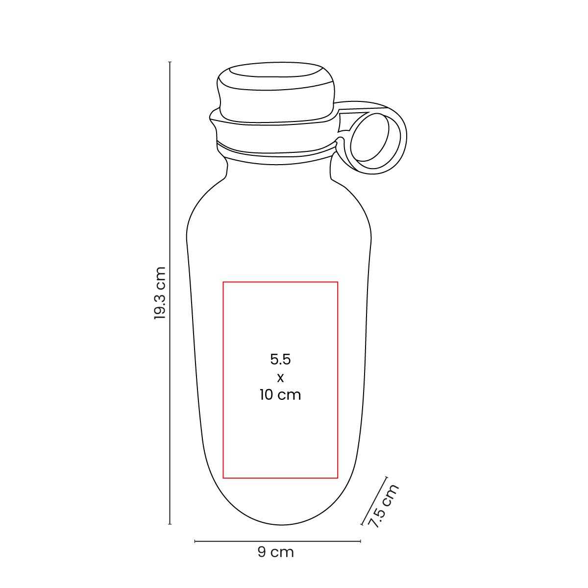 Cilindro metalico de una pared. Incluye tapa de plastico con sistema de rosca para un cierre hermetico. Adicional, su misma tapa incluye una segunda rosca que incorporar un filtro para preparar te o infusiones. El asa en la tapa permite transportarlo con mayor comodidad. Capacidad de 22 Oz. Incluye caja individual.