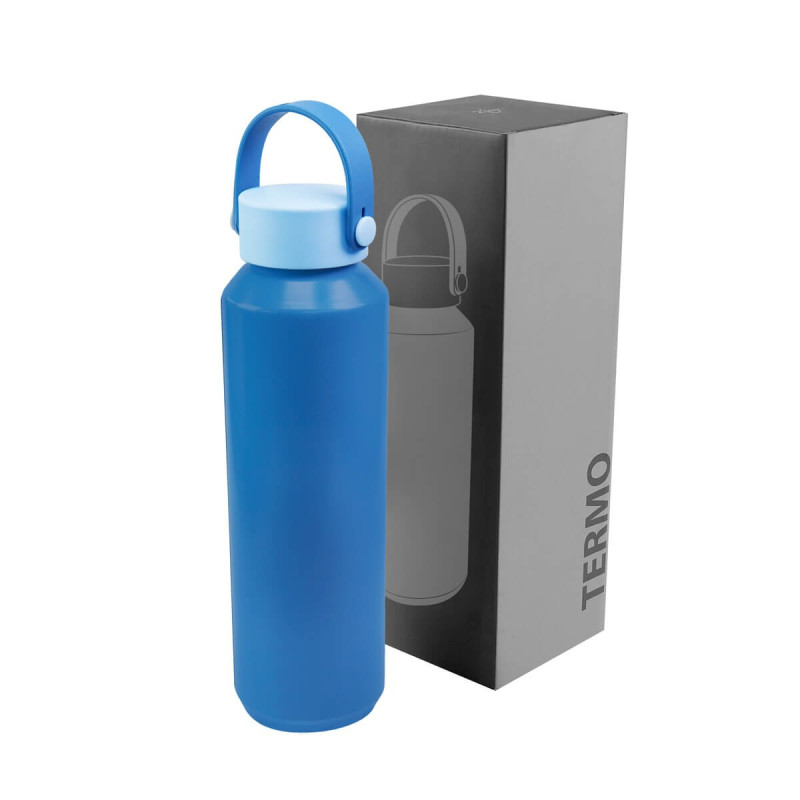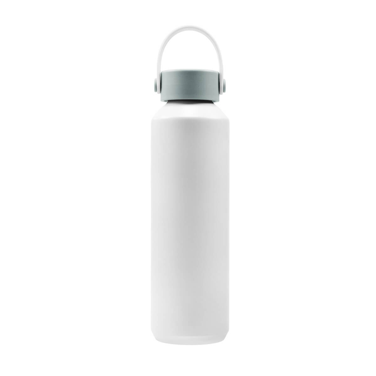Cilindro metalico de una pared. Incluye tapa de plastico con sistema de rosca que asegura un cierre hermetico. Adicional, su misma tapa incluye asa de silicon, que te permite llevarlo facilmente a todas partes. Capacidad de 27 Oz. Incluye caja individual.