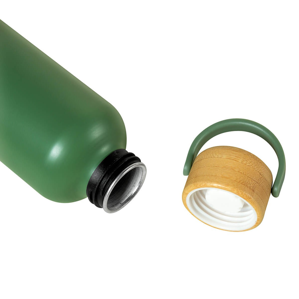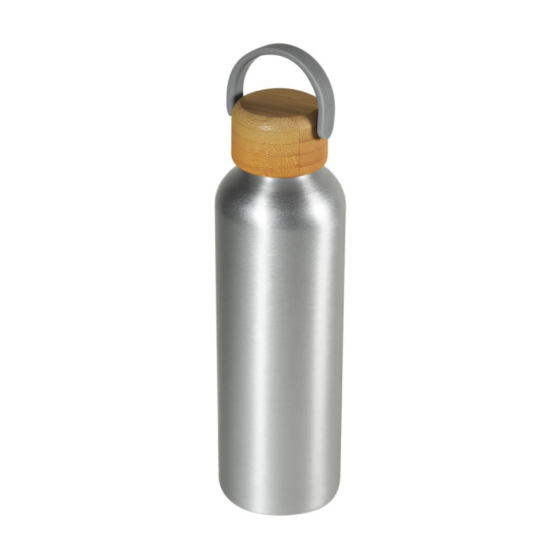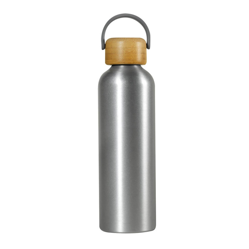 Cilindro metalico de una pared. Tapa de bambu con cierre de rosca y asa de plastico. Terminado mate.  Incluye caja individual. El bambu es un producto natural el cual puede presentar variaciones en tonalidades y vetas.