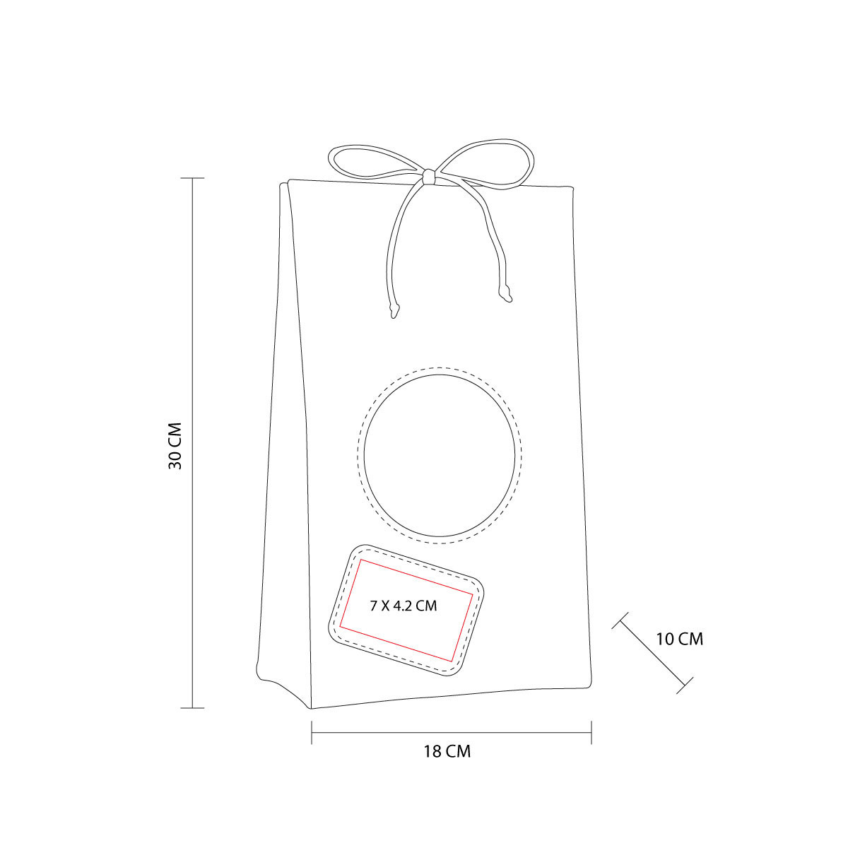 Área de impresión: 10 x 6 cm Bolsa / 7 x 4 cm Parche