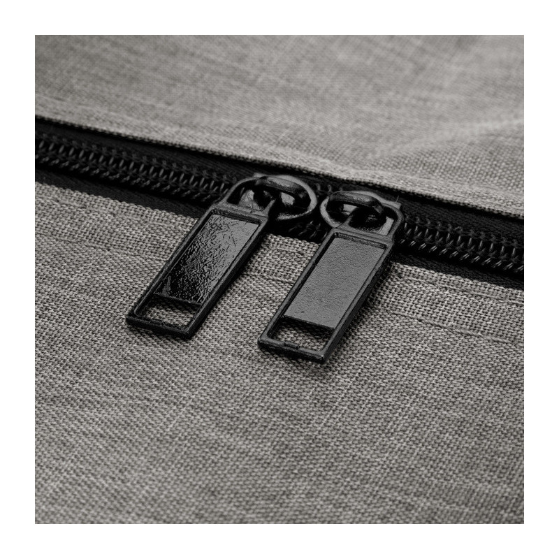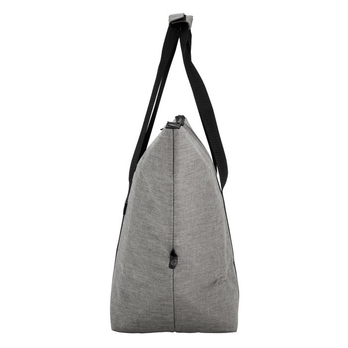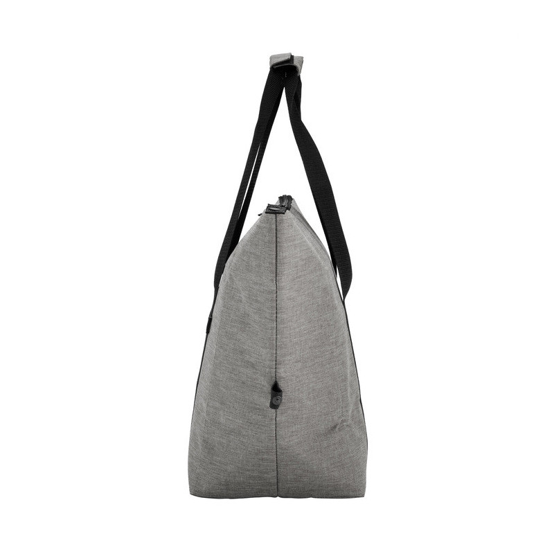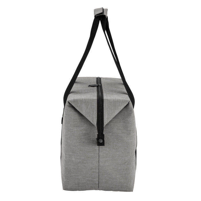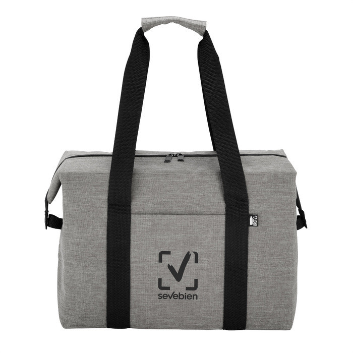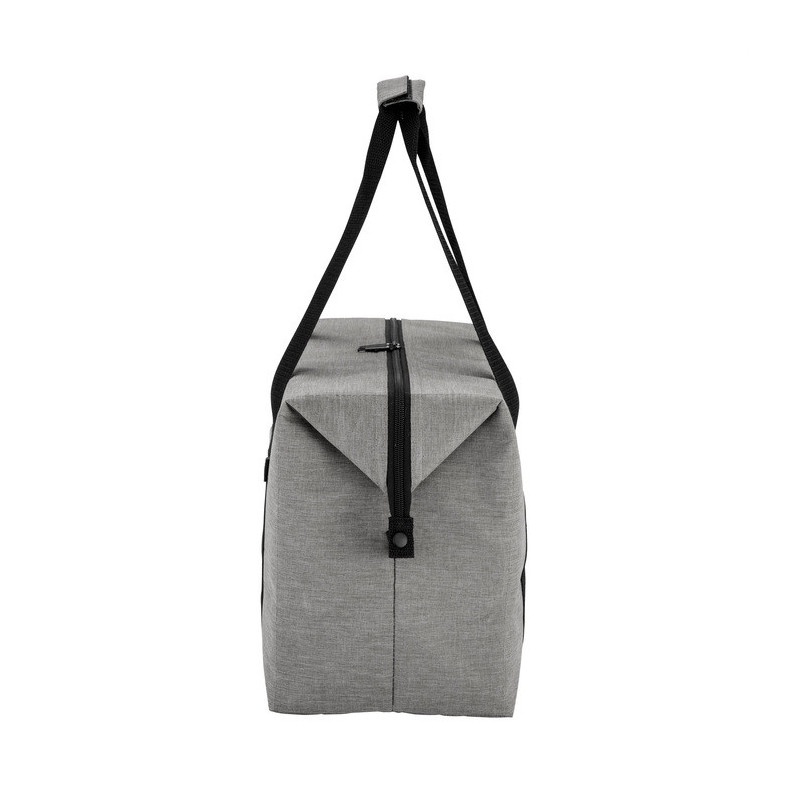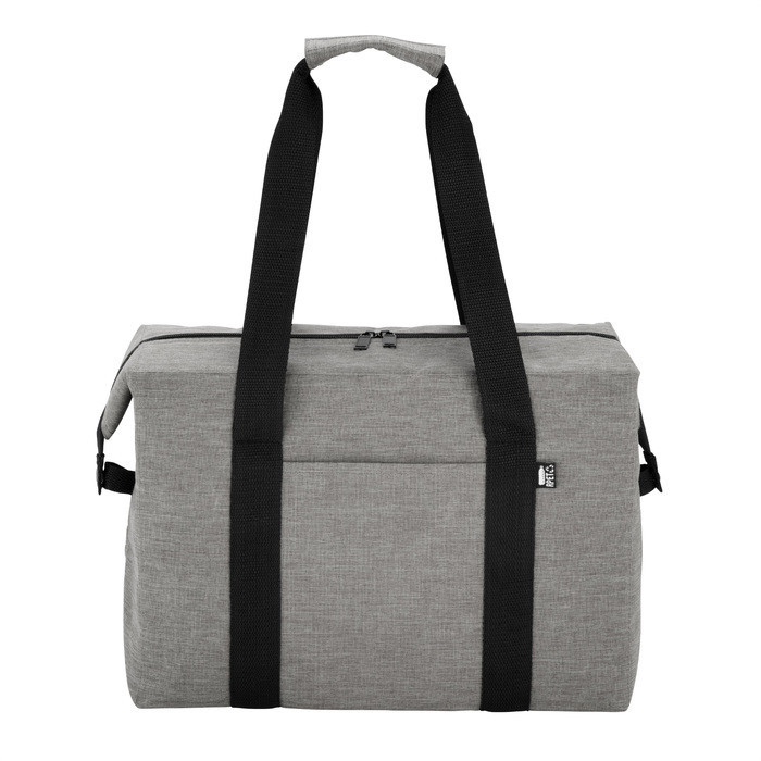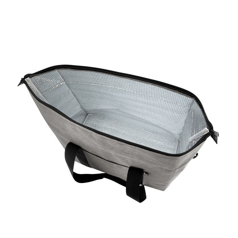 Bolso térmico. Cierre posterior con dos tiradores. Hebillas metálicas en los laterales que permiten cambiar su formato a prisma. Bolsillo frontal. Dos asas con refuerzo de velcro.