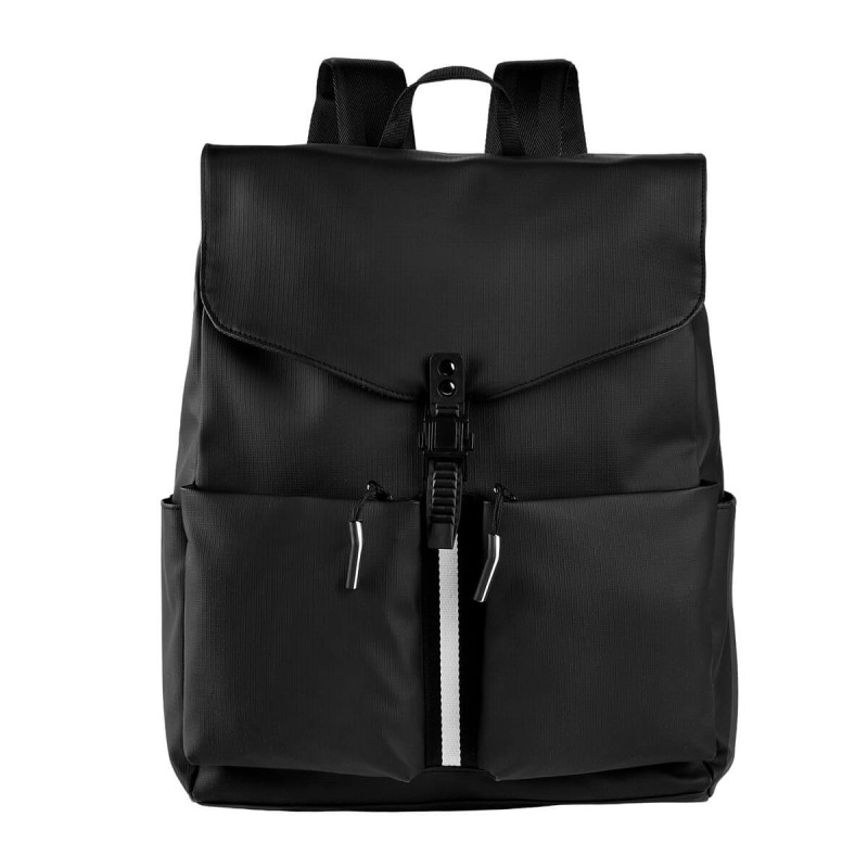Mochila ejecutiva de diseno moderno que combina estilo y funcionalidad. Su solapa superior con broche de plastico, garantiza un cierre seguro, mientras que los broches metalicos laterales, permiten expandir el compartimento principal para obtener mayor espacio si asi lo necesitas. Cuenta con un compartimento especial para laptop de hasta 15 pulgadas, dos bolsillos frontales con cierre para objetos pequenos, mientras que sus bolsillos laterales, son adecuados para botellas o articulos de uso frecuente. En la parte posterior, incluye un bolsillo de se seguridad con cierre, ideal para guardar pertenencias de valor. Una opcion pracitica para quienes buscan organizacion con un toque profesional.