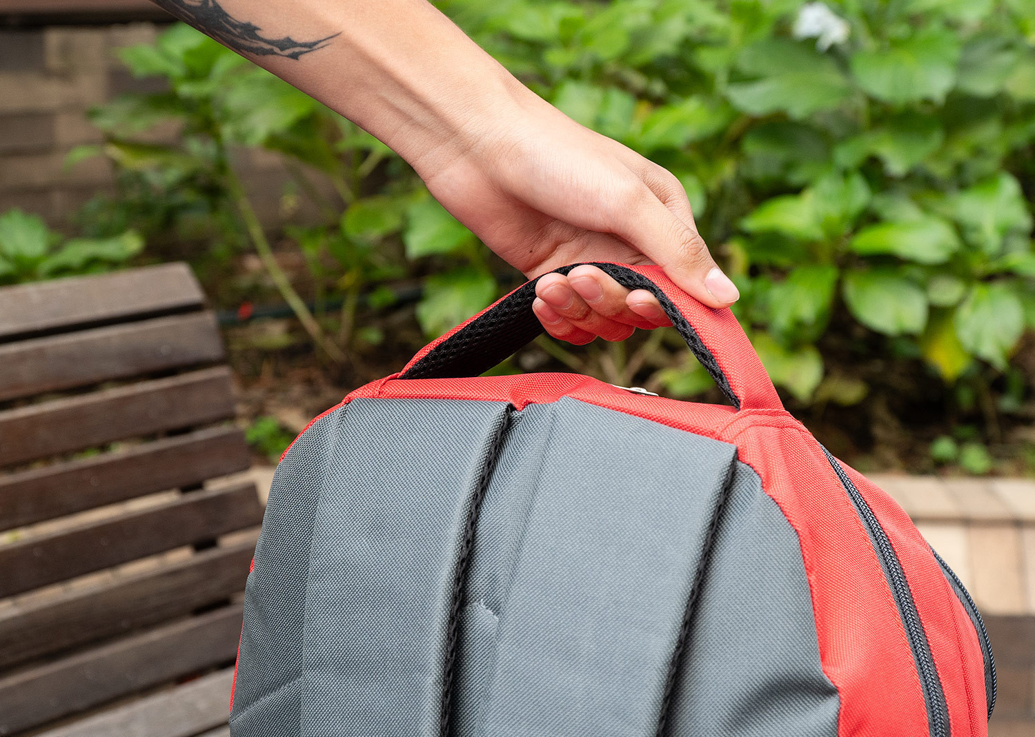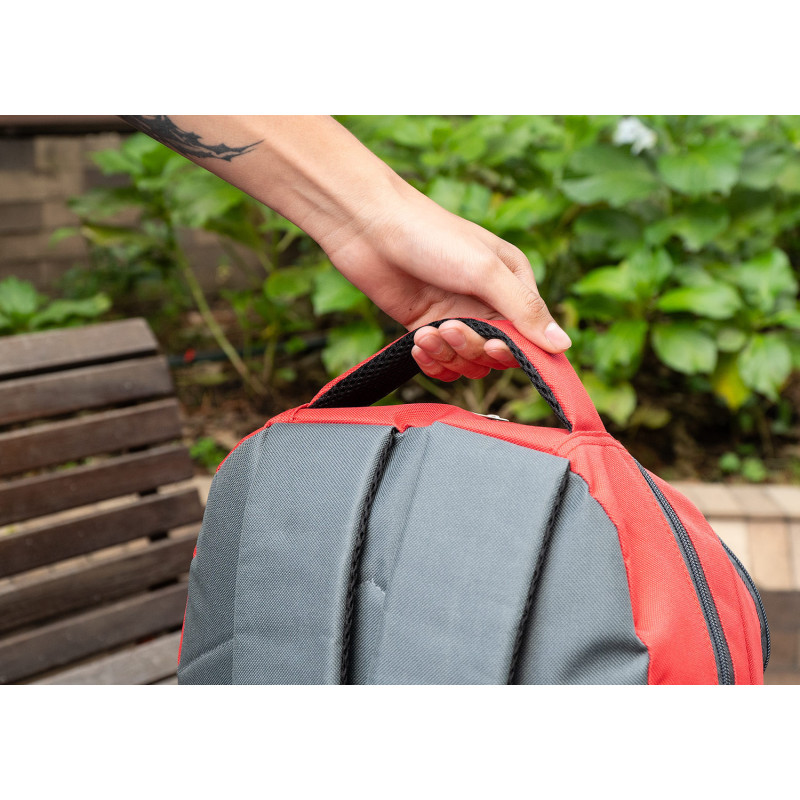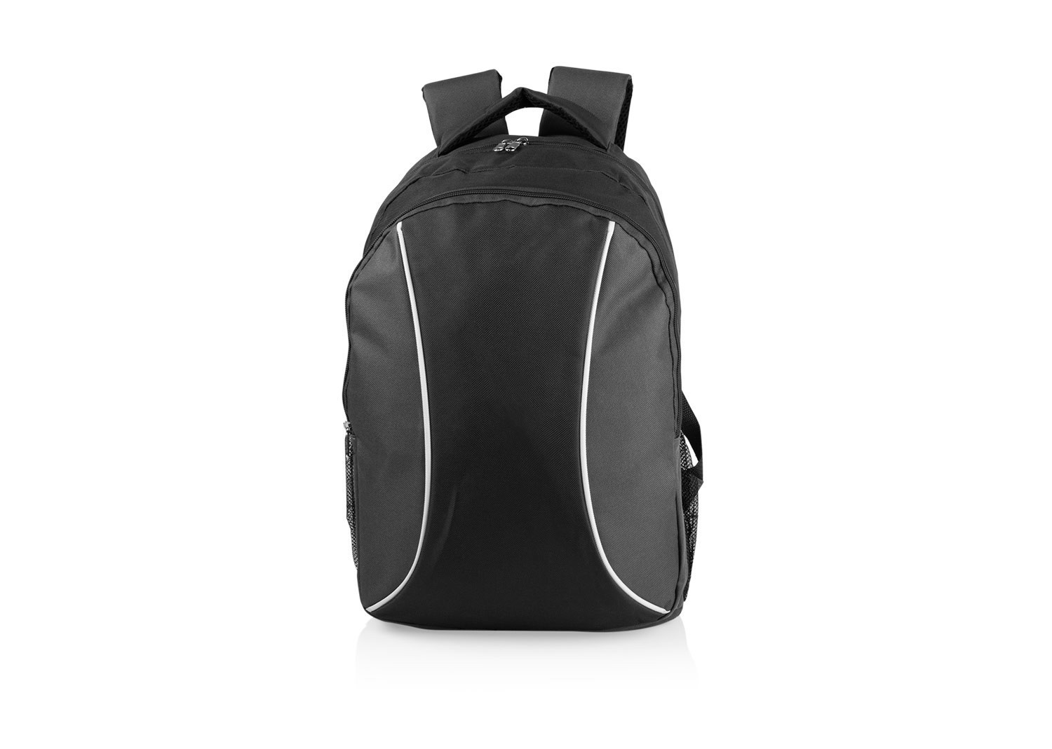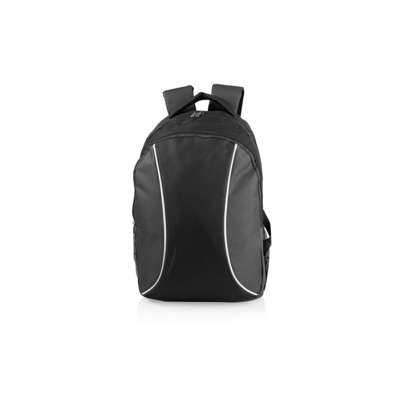 Morral con cargaderas ajustables, bolsillos principal y frontal con cremallera. Bolsillos laterales en malla, útiles para botellas.