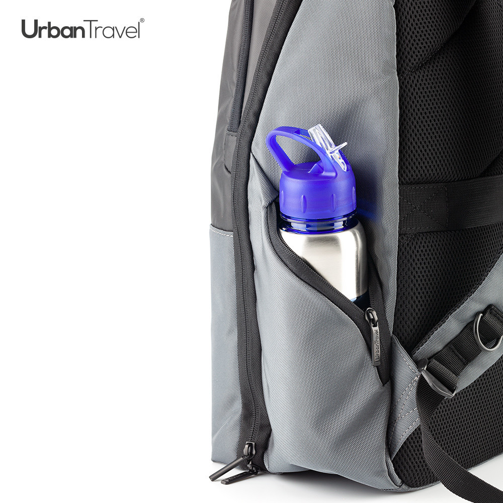 Morral en poliéster, un bolsillo externo con cremallera, dos bolsillos laterales. Espaldar acolchado. Bolsillo para portátil de hasta 15”. Compartimentos internos y reata posterior para adaptar a trolley.