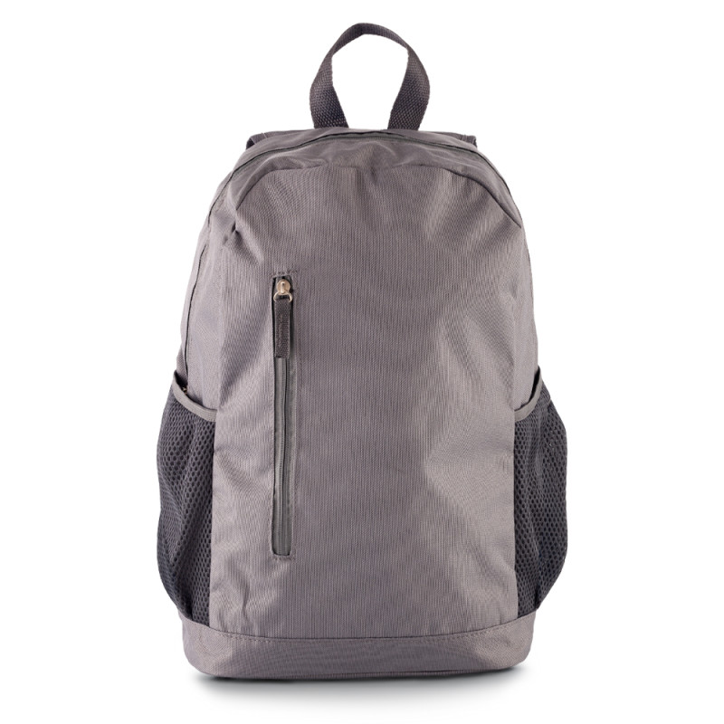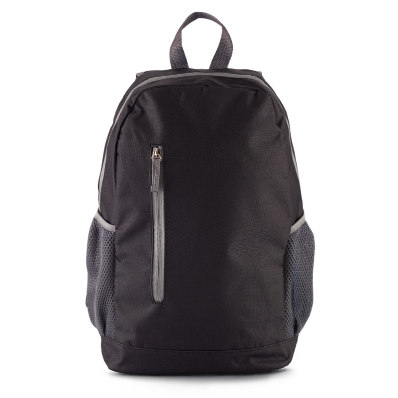 Morral backpack en poliéster, dos bolsillos laterales externos de malla y dos con cremallera. Espaldar acolchado. Apto para portátil de 15”.