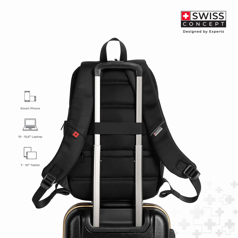Compartimiento acolchado para laptop de 15,6”. Compartimiento apropiado para Tablet. Amplio y cómodo espacio interno para documentos, libros, cámara, etc. Asas acolchadas y ajustables para mayor comodidad. Bolsillo secreto en espaldar para objetos de alto valor o documentos personales. Reata en espaldar para sujetar a maleta de viaje. Bolsillos laterales para cargar bebidas o sombrilla. Tela hidrofóbica y resistente para repeler el agua exterior.