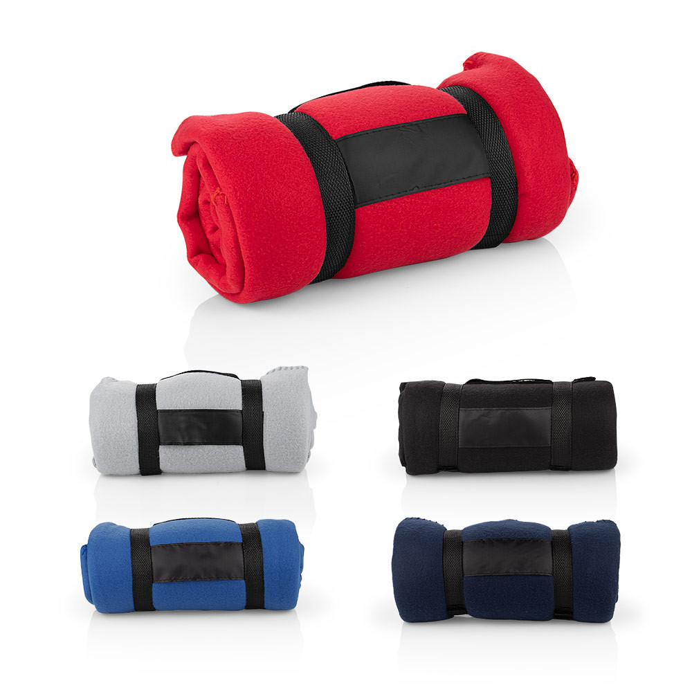 Manta viajera en lana suave con correa en nylon para ajuste y transporte, Peso: 180-180g, ideal para llevar en viajes