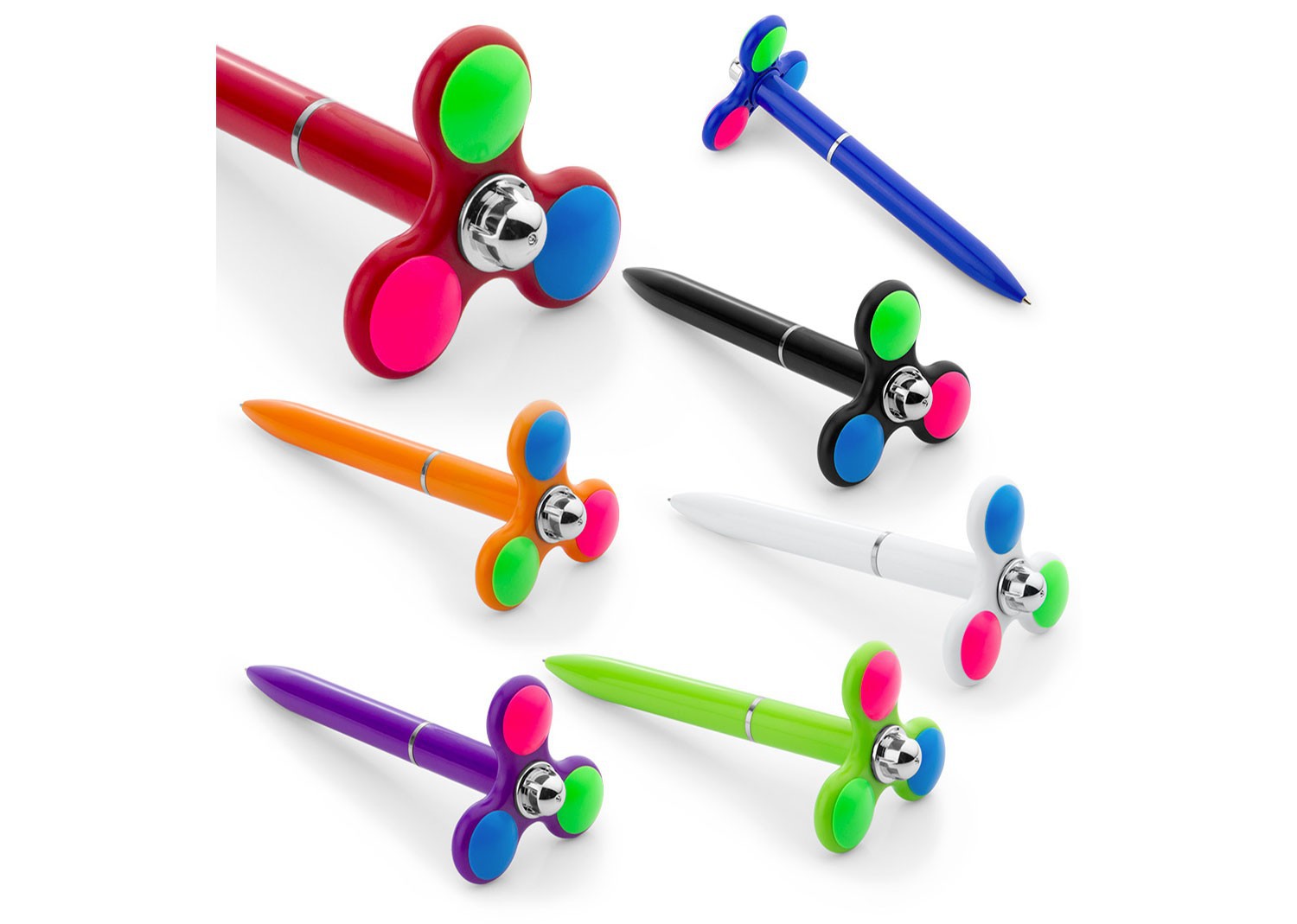 Bolígrafo plástico de color blanco, sistema de apertura twist. Parte superior con diseño de spinner.