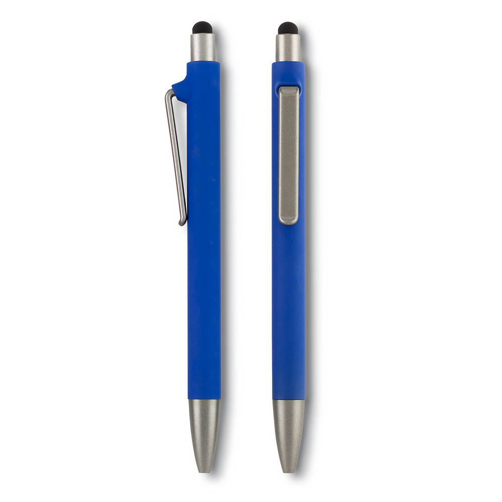 Bolígrafo plástico con stylus y clip metálico. Mecanismo push.