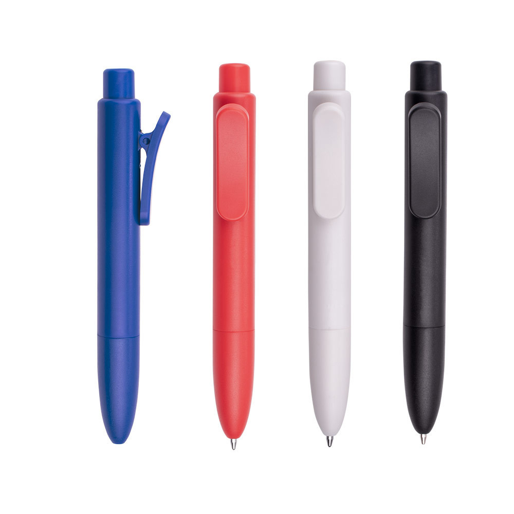 Bolígrafo de plástico de pulsador, cuerpo de color sólido, clip estilo pinza y mecanismo de apertura retráctil. (Bolígrafo/Esfero)