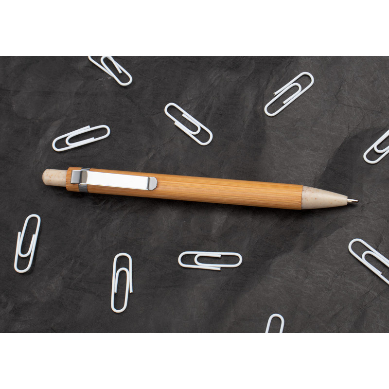 Bolígrafo ecológico con sistema retráctil y clip metálico