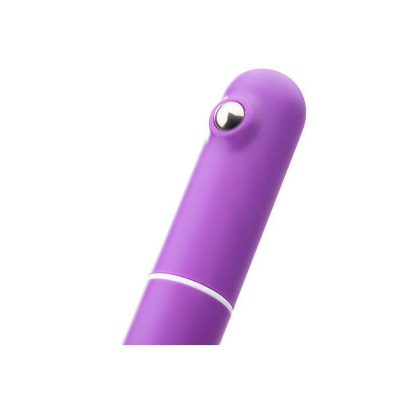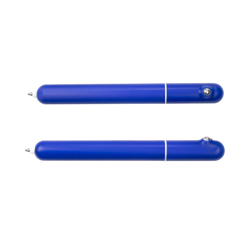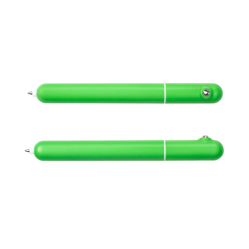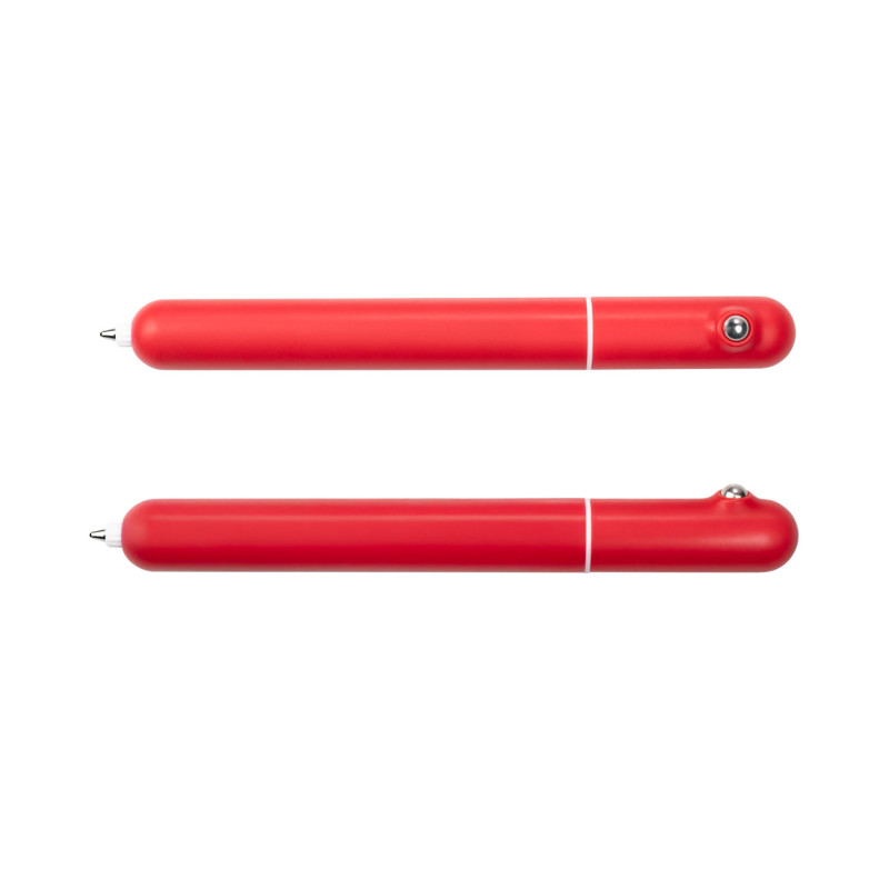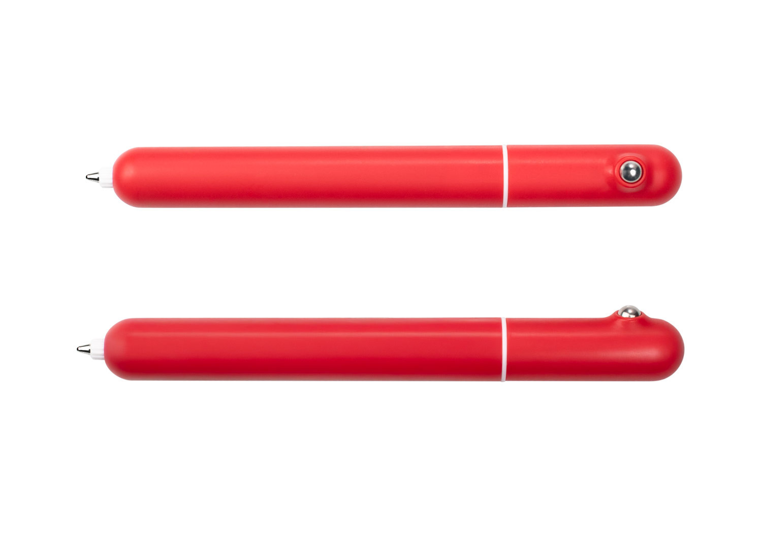 Bolígrafo con barril de color sólido y elegante anillo cromado. En la parte superior, incorpora una esfera metálica con función antiestrés, ideal para mantener las manos ocupadas durante la jornada. El sistema de giro activa la escritura de forma práctica y fluida. Un diseño moderno que combina funcionalidad y un toque interactivo.