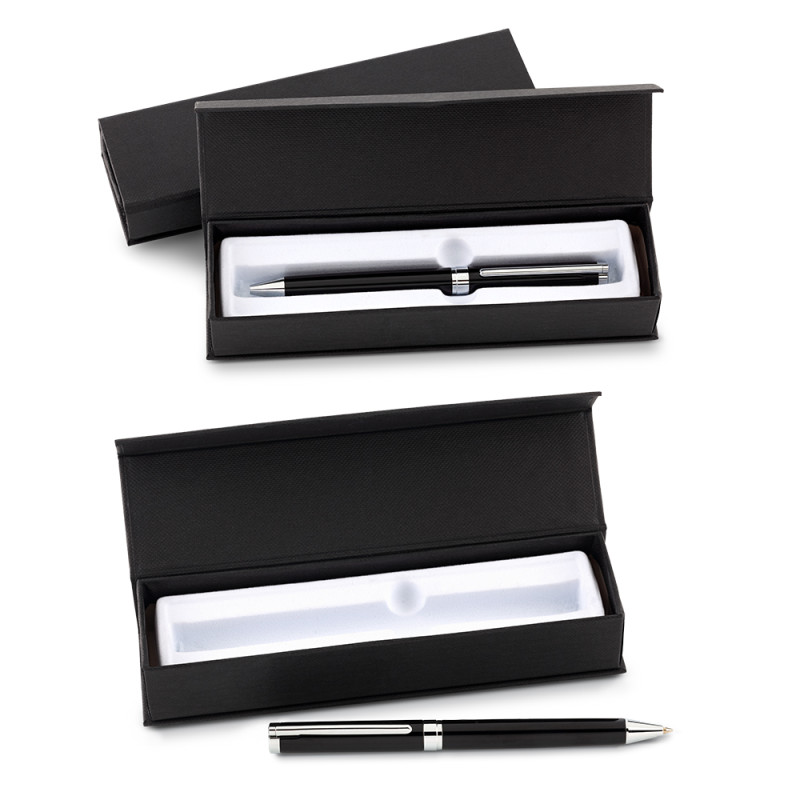 Bolígrafo metálico en estuche de cartón. Mecanismo twist. Empaque caja individual.