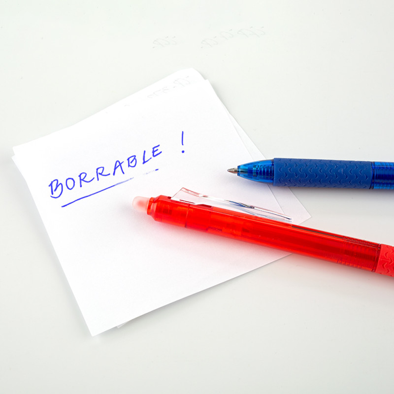 Bolígrafo plástico con mecanismo push. Tinta borrable y borrador.