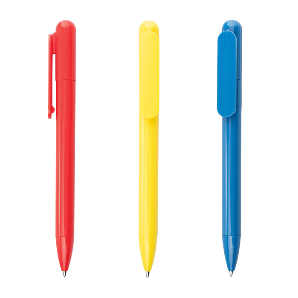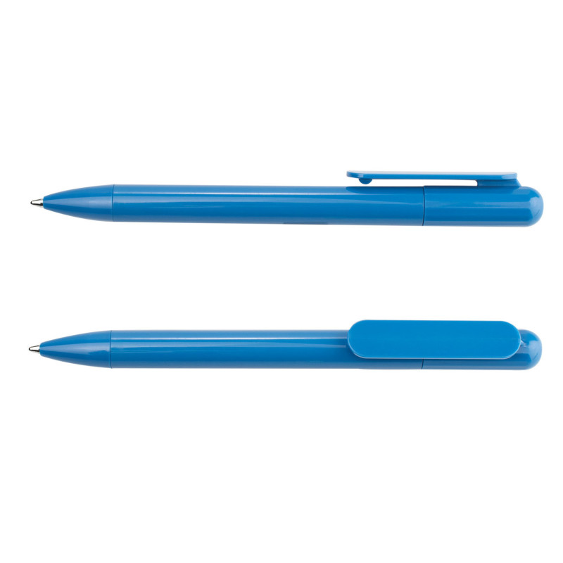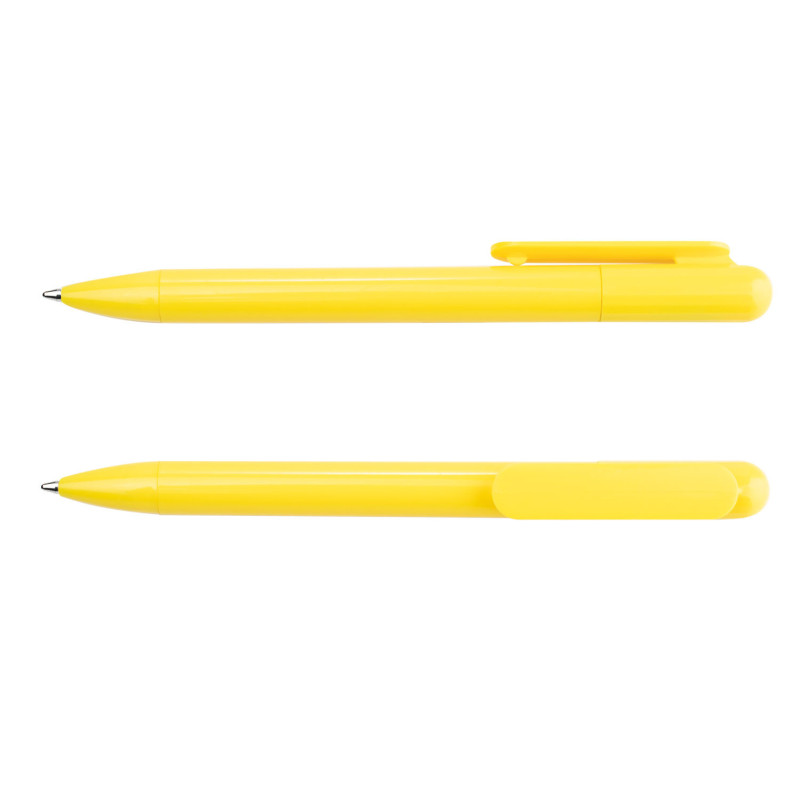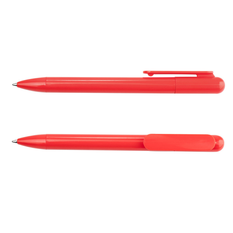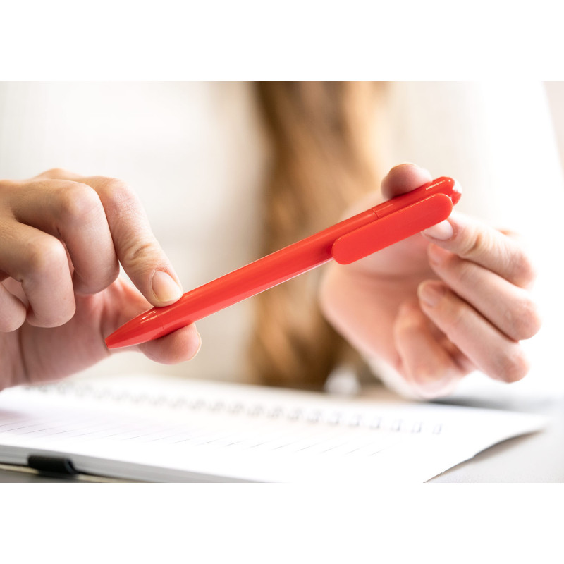 Bolígrafo de plástico, cuerpo superior e inferior de color sólido, Sistema de apertura de giro.