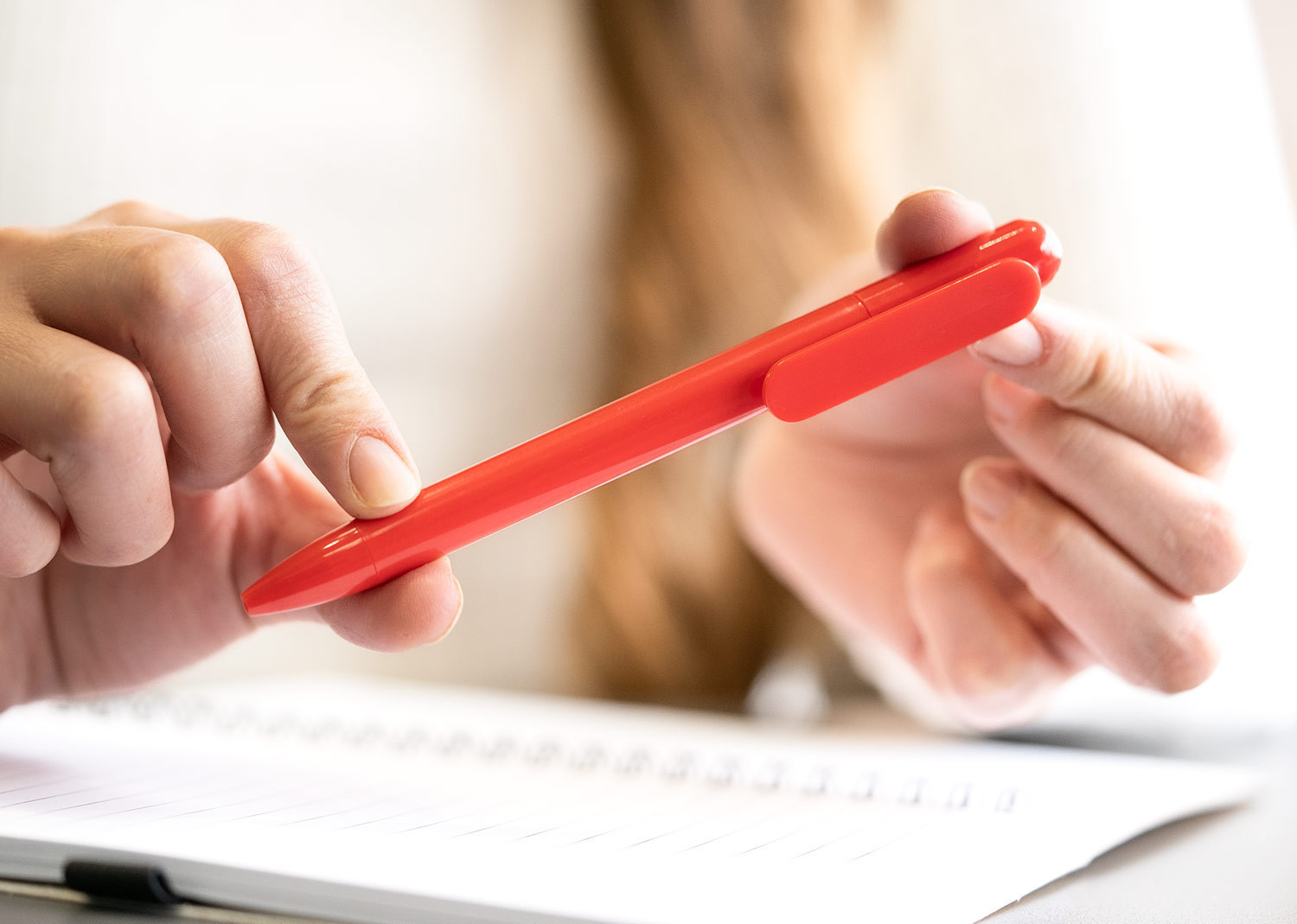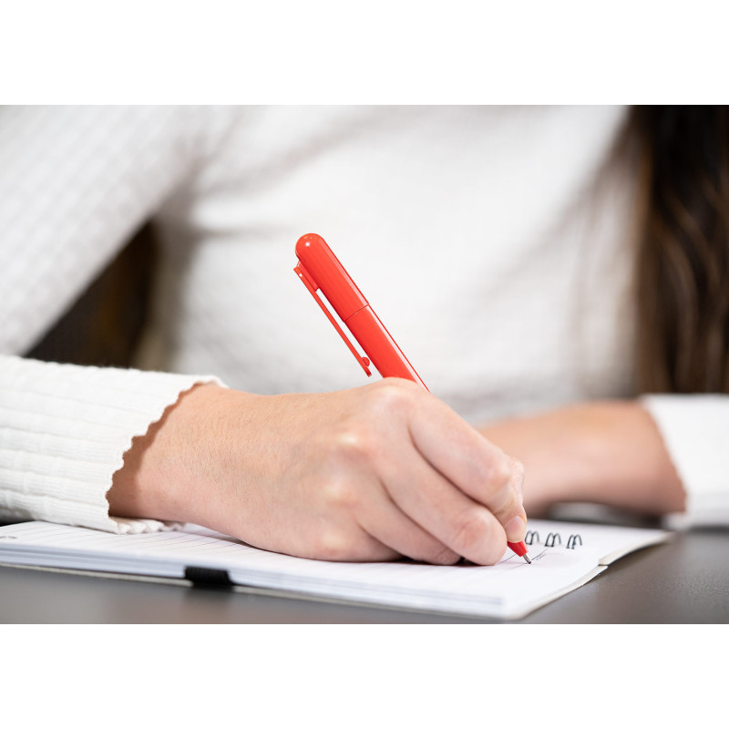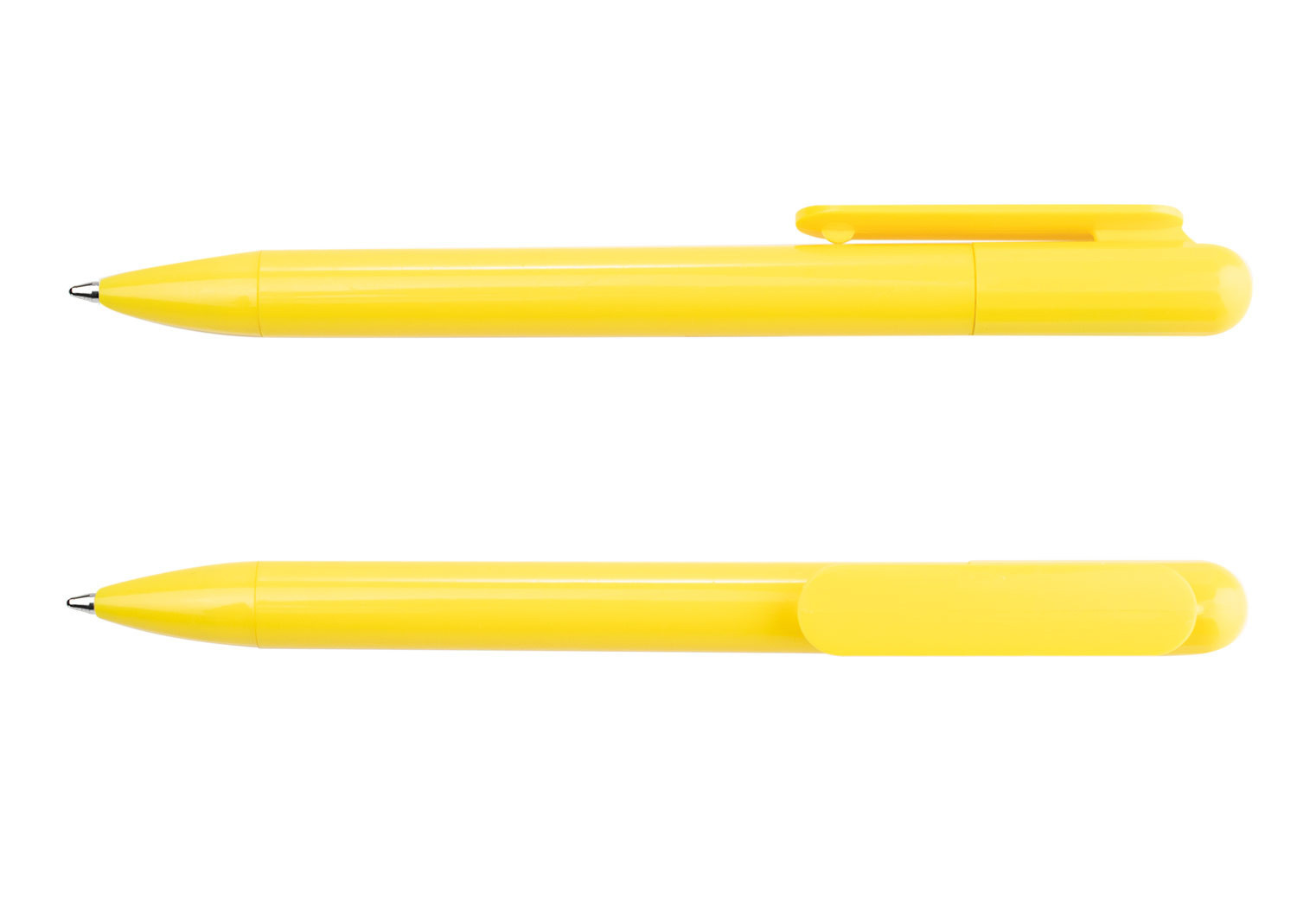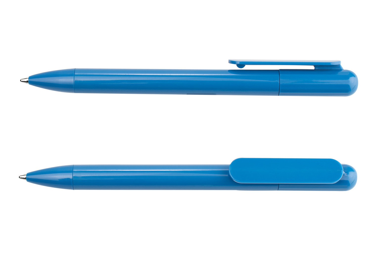 Bolígrafo de plástico, cuerpo superior e inferior de color sólido, Sistema de apertura de giro.