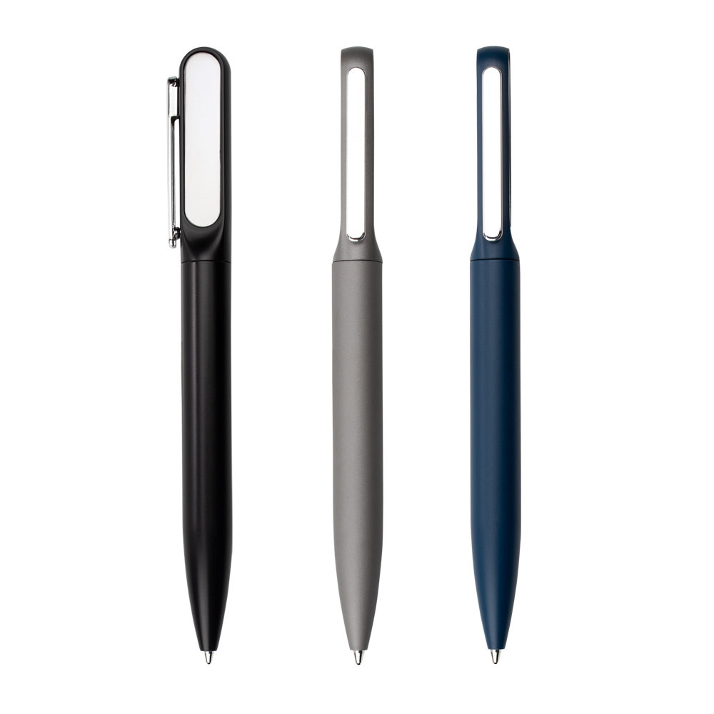 Bolígrafo de aluminio con diseño elegante y mecanismo giratorio. Acabado mate lacado, clip metálico cromado y detalle metálico superior. Incluye recambio tipo Metal Cross para una escritura fluida y duradera. (Bolígrafo/Esfero)