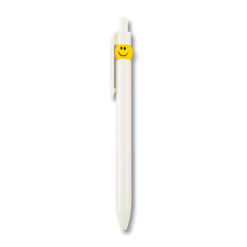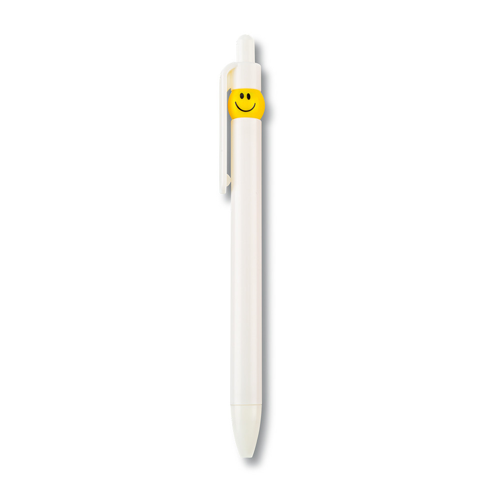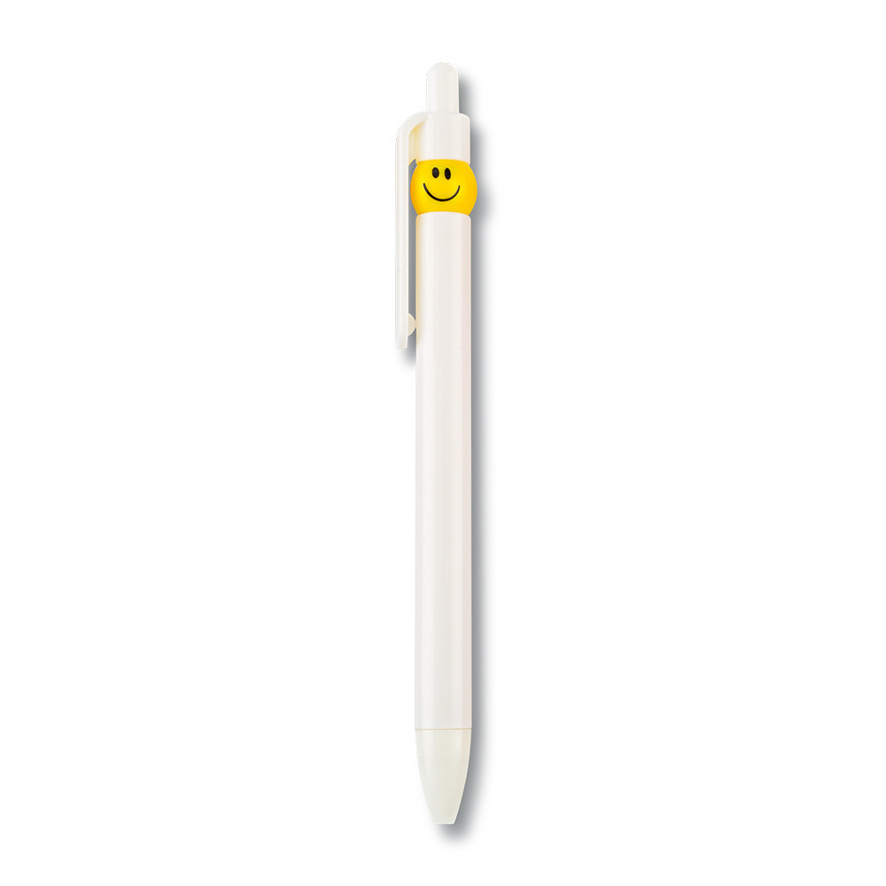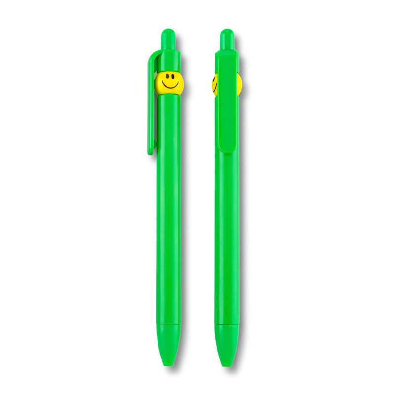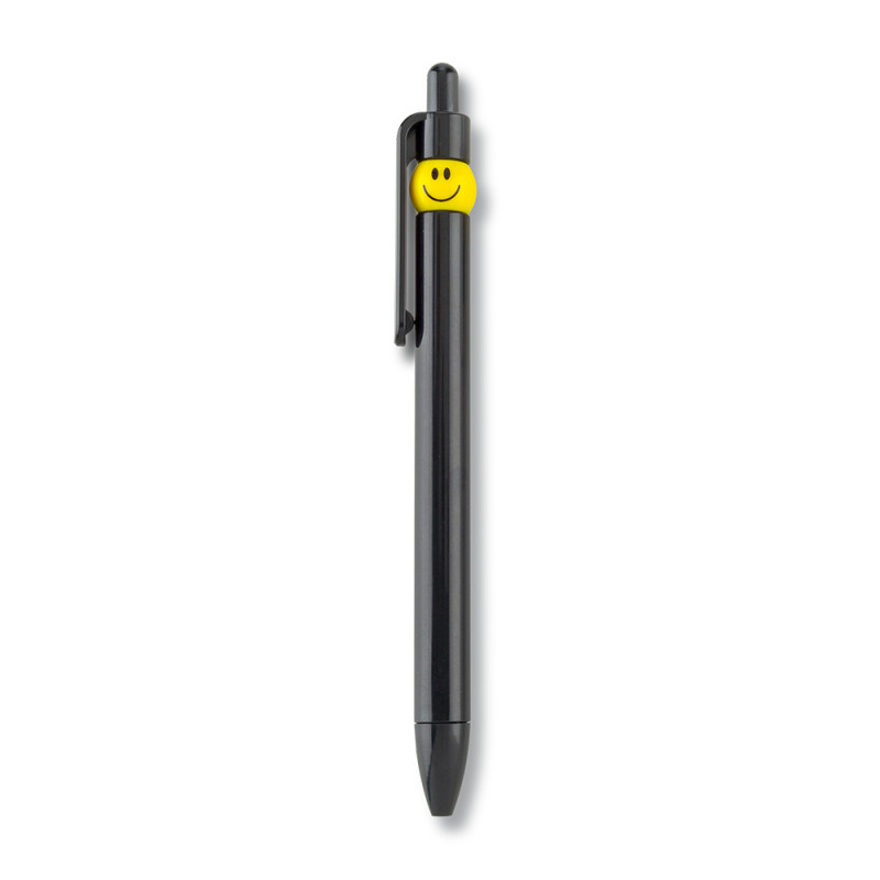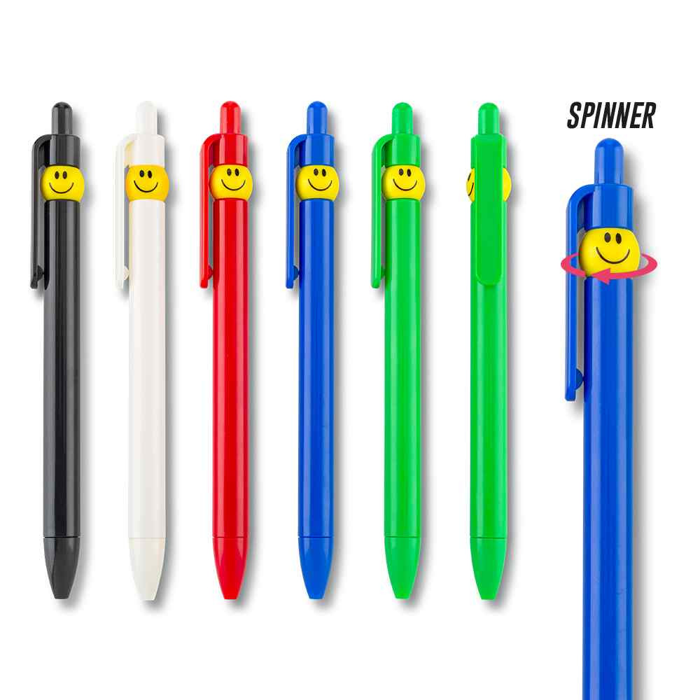 Bolígrafo plástico con mecanismo push. Incluye un antiestresante giratorio.