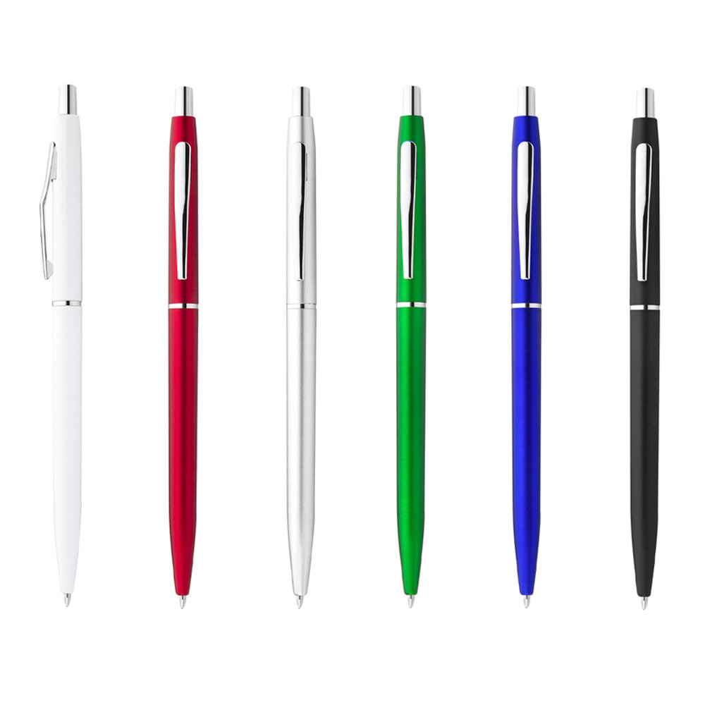 Bolígrafo plástico con acabado mate clip plateado. Sistema de apertura retráctil.