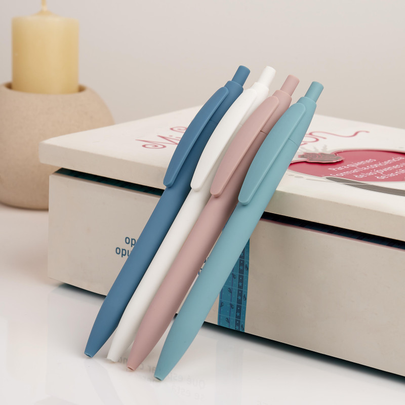 Bolígrafo con terminado rubber. Mecanismo pulsador.