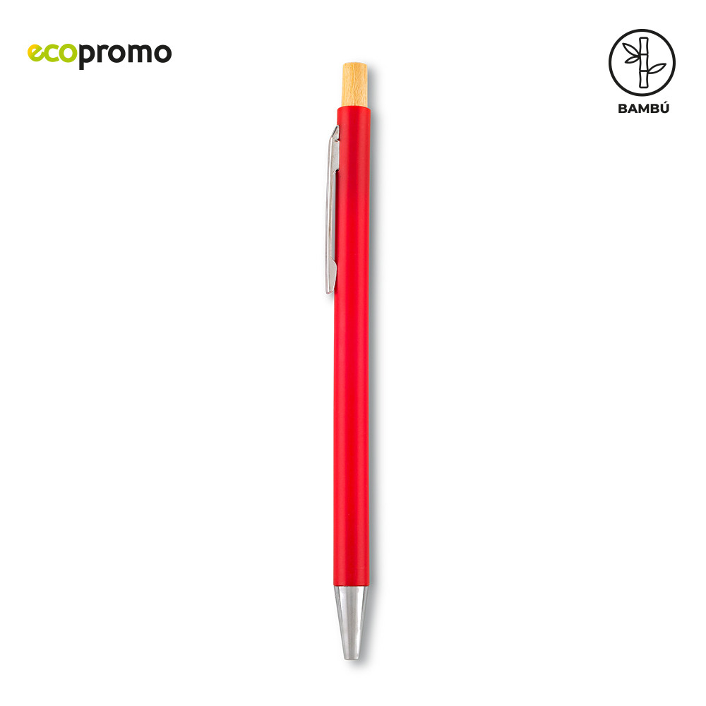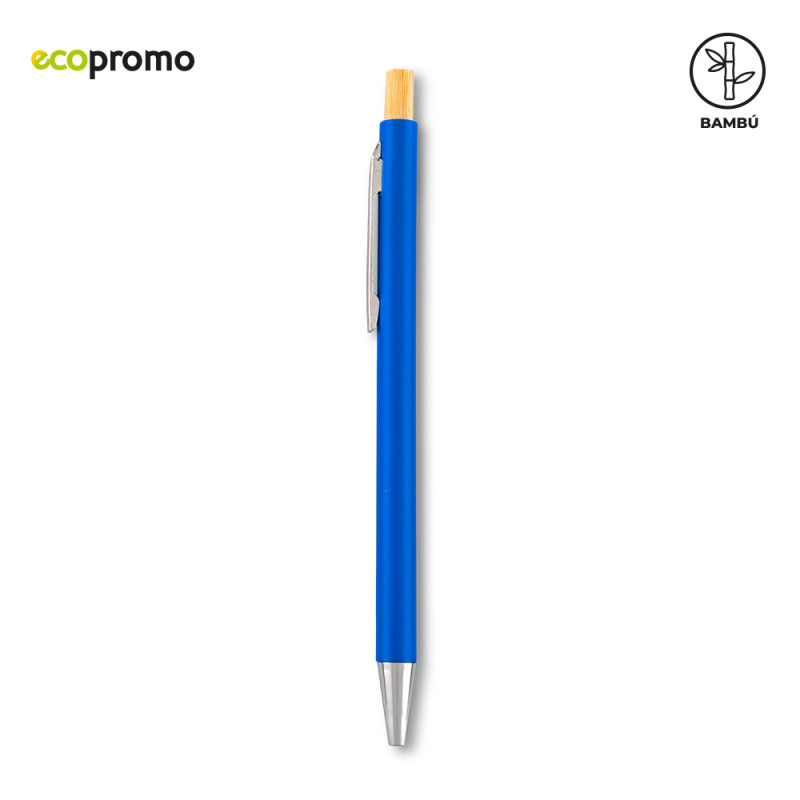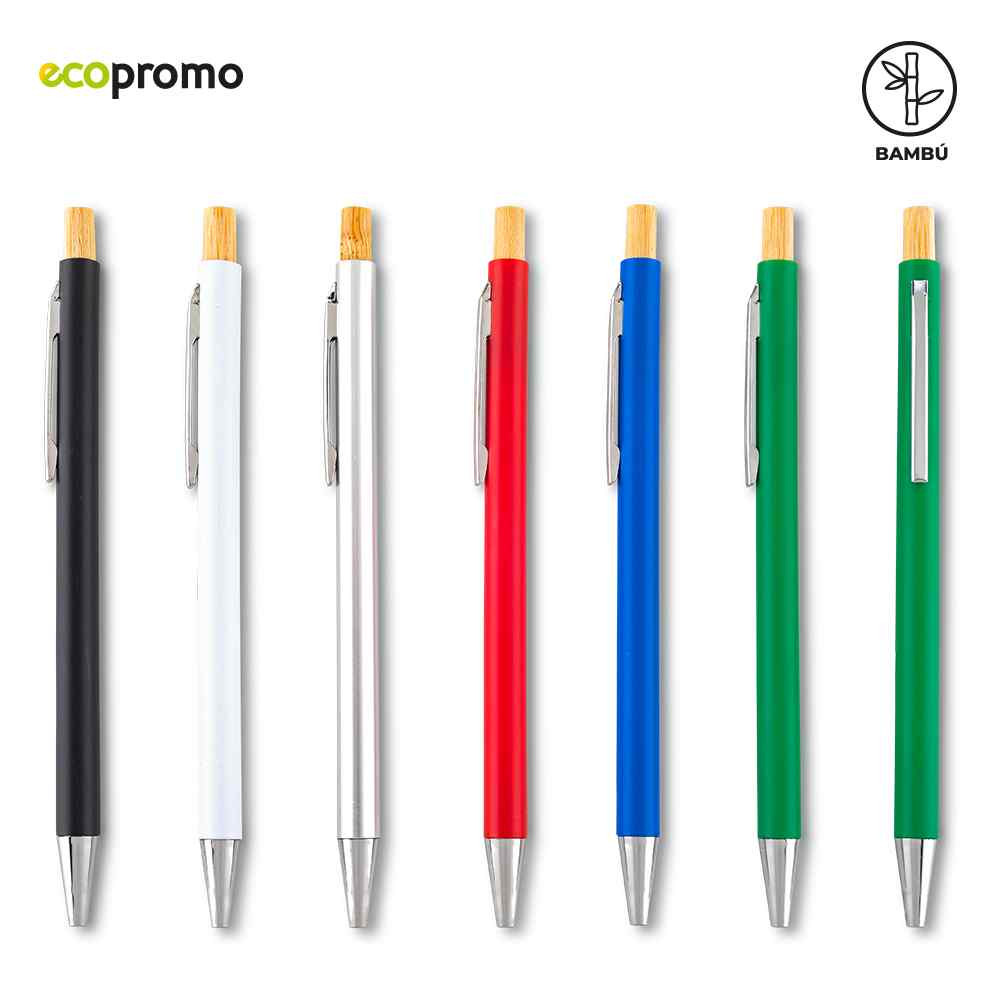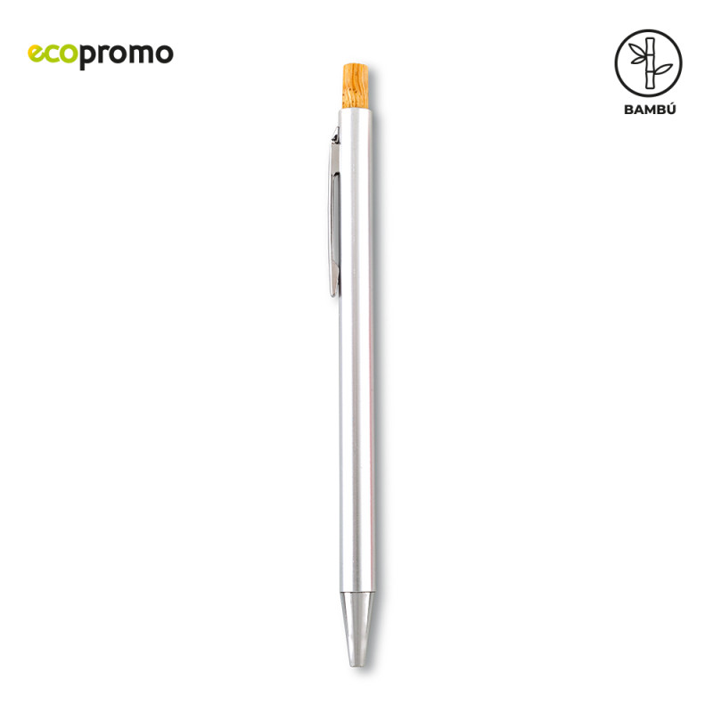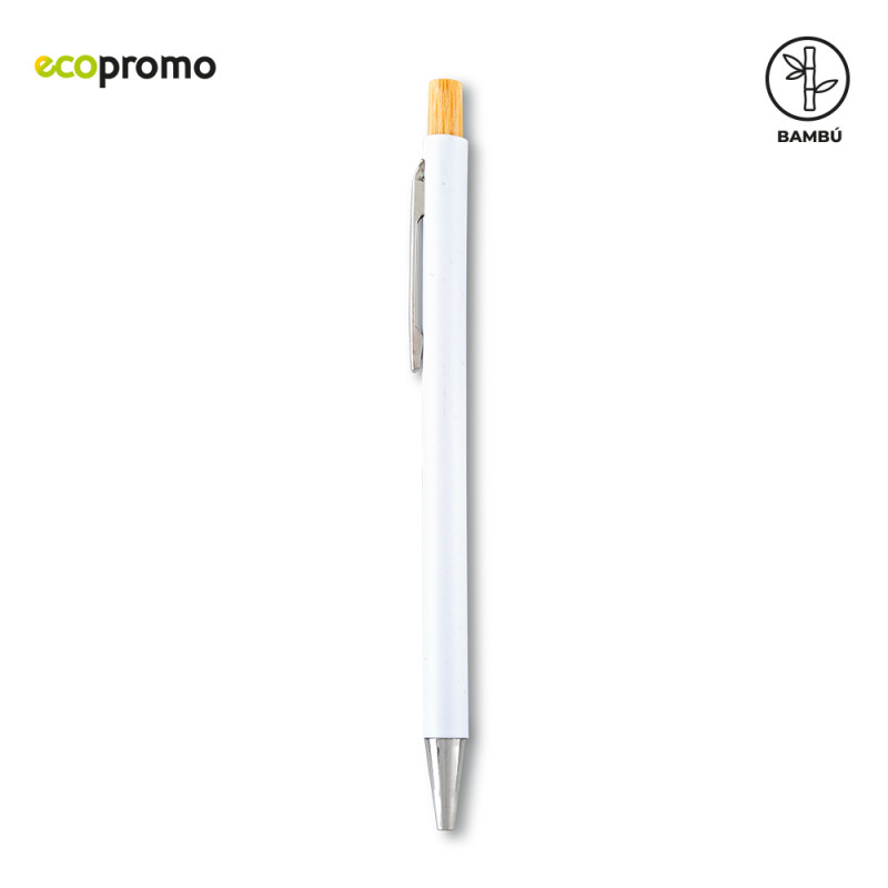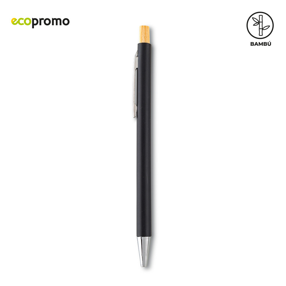 Bolígrafo plástico con mecanismo push y partes en bambú.