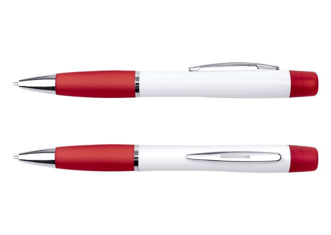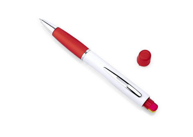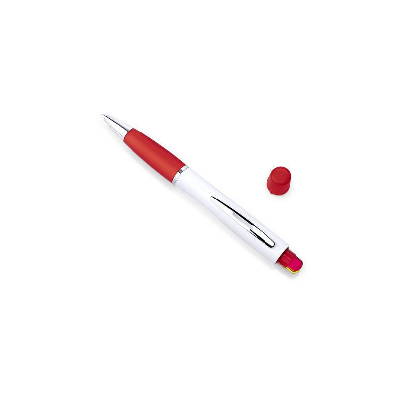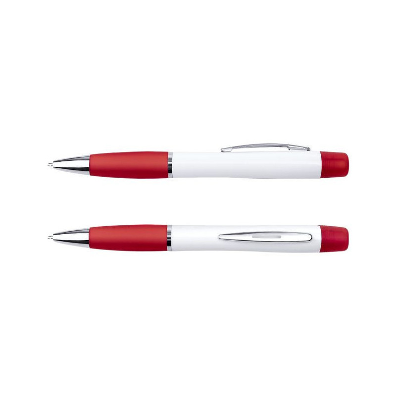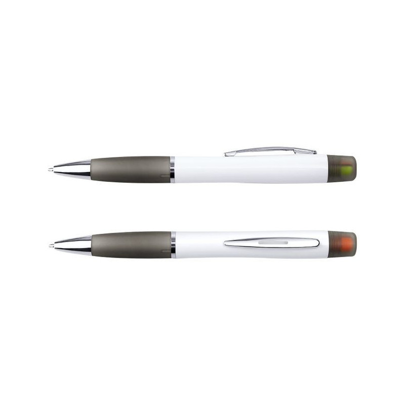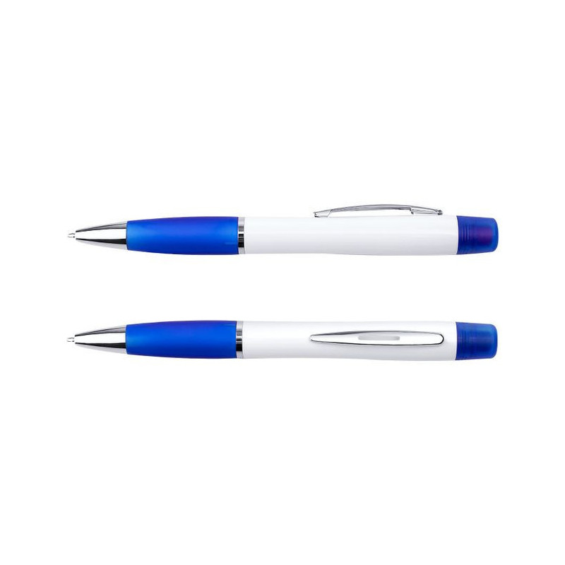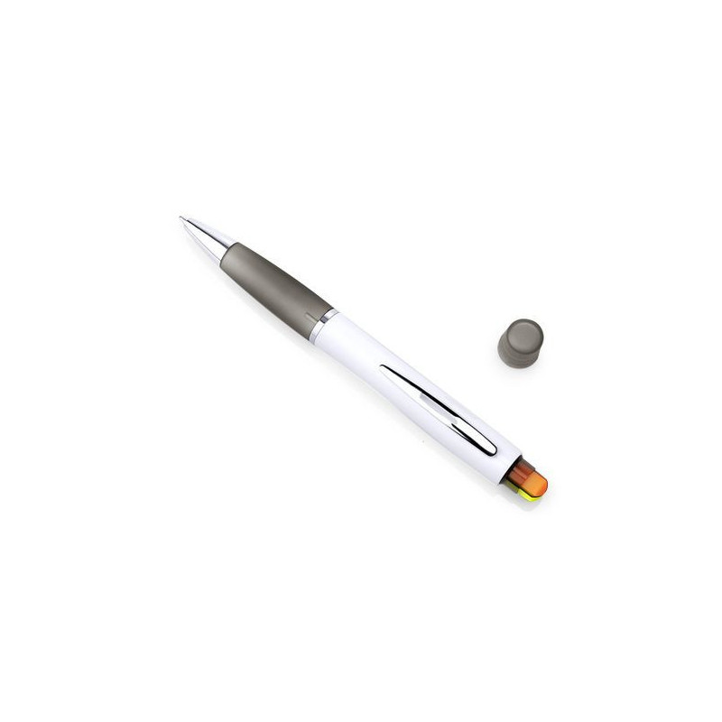 Boligrafo Oxford Blanco, Bolígrafo plástico sistema twist y resaltador con tapa, Clip Metálico