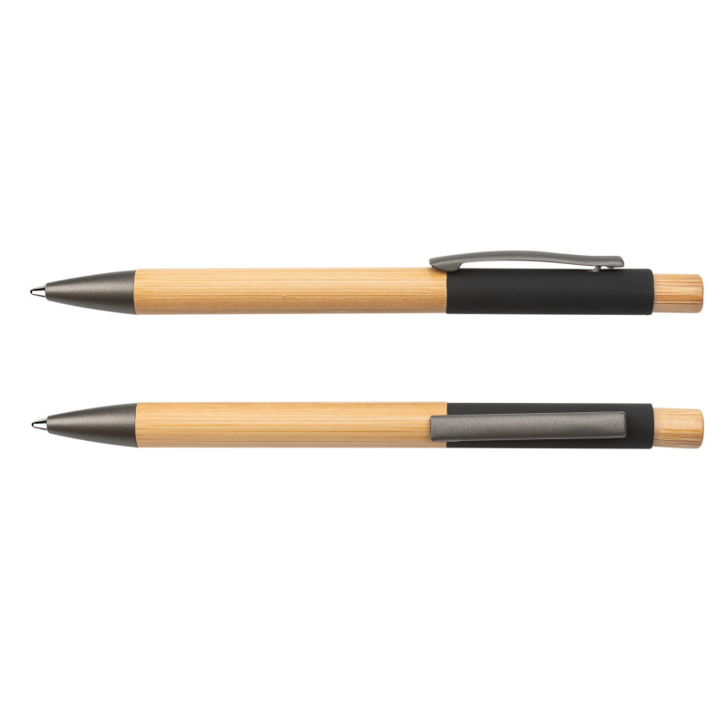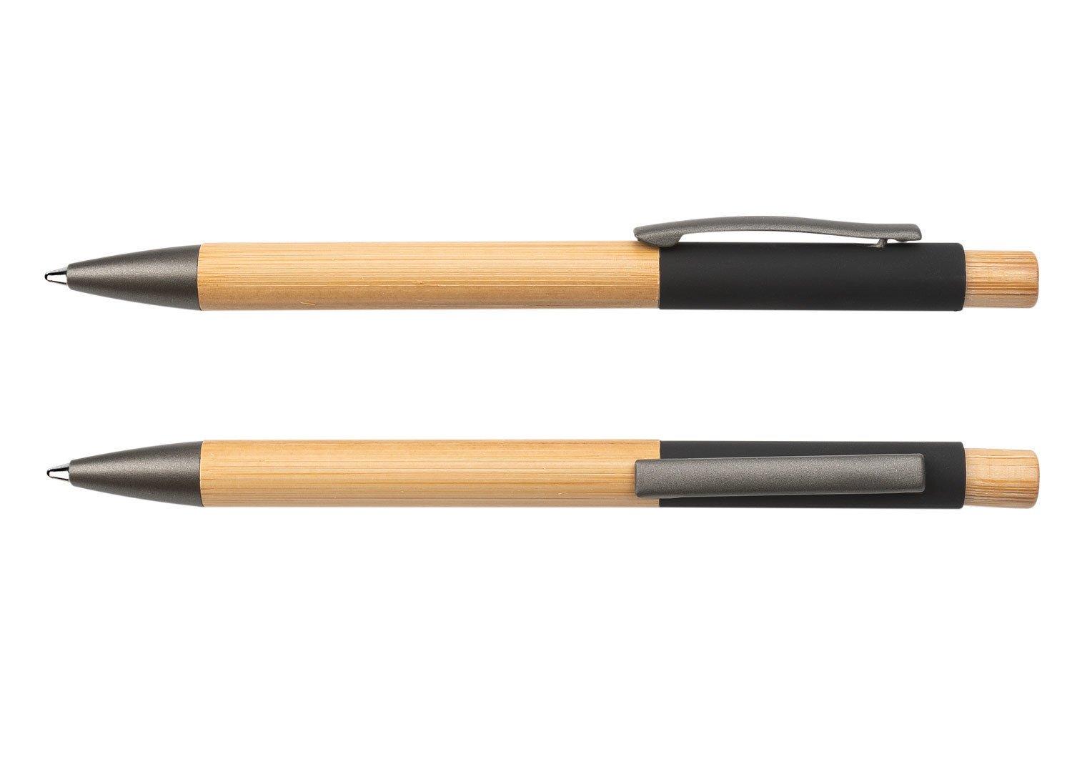 Bolígrafo ecológico elaborado en bambú, con sistema retráctil. Clip y punta metálicos.