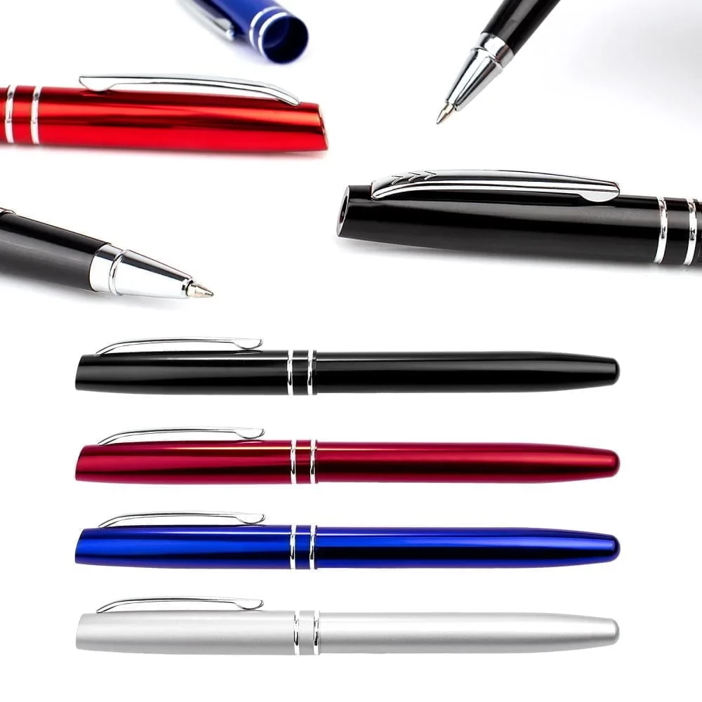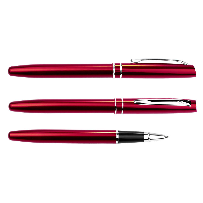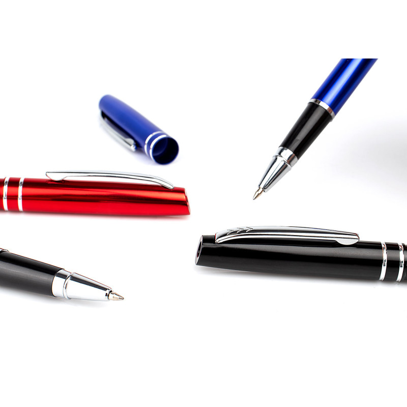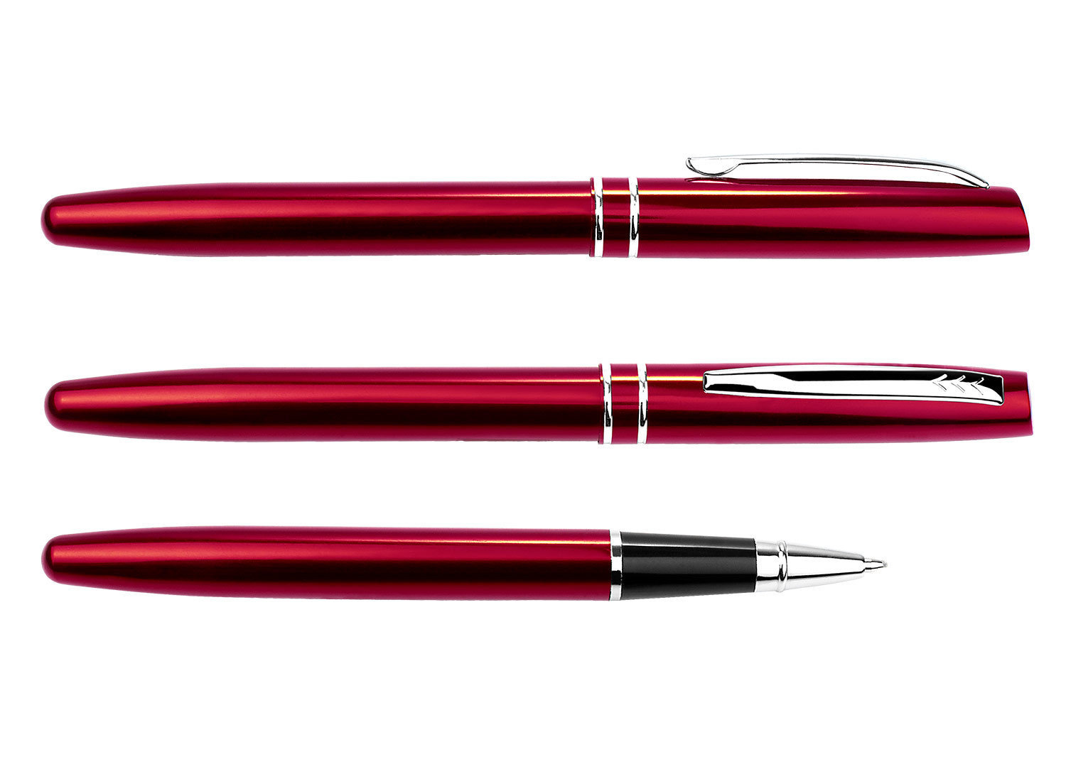 Bolígrafo en Aluminio color metalizado con tapa a presión, clip Metalico, Diseño con anillos metalizados en la mitad.