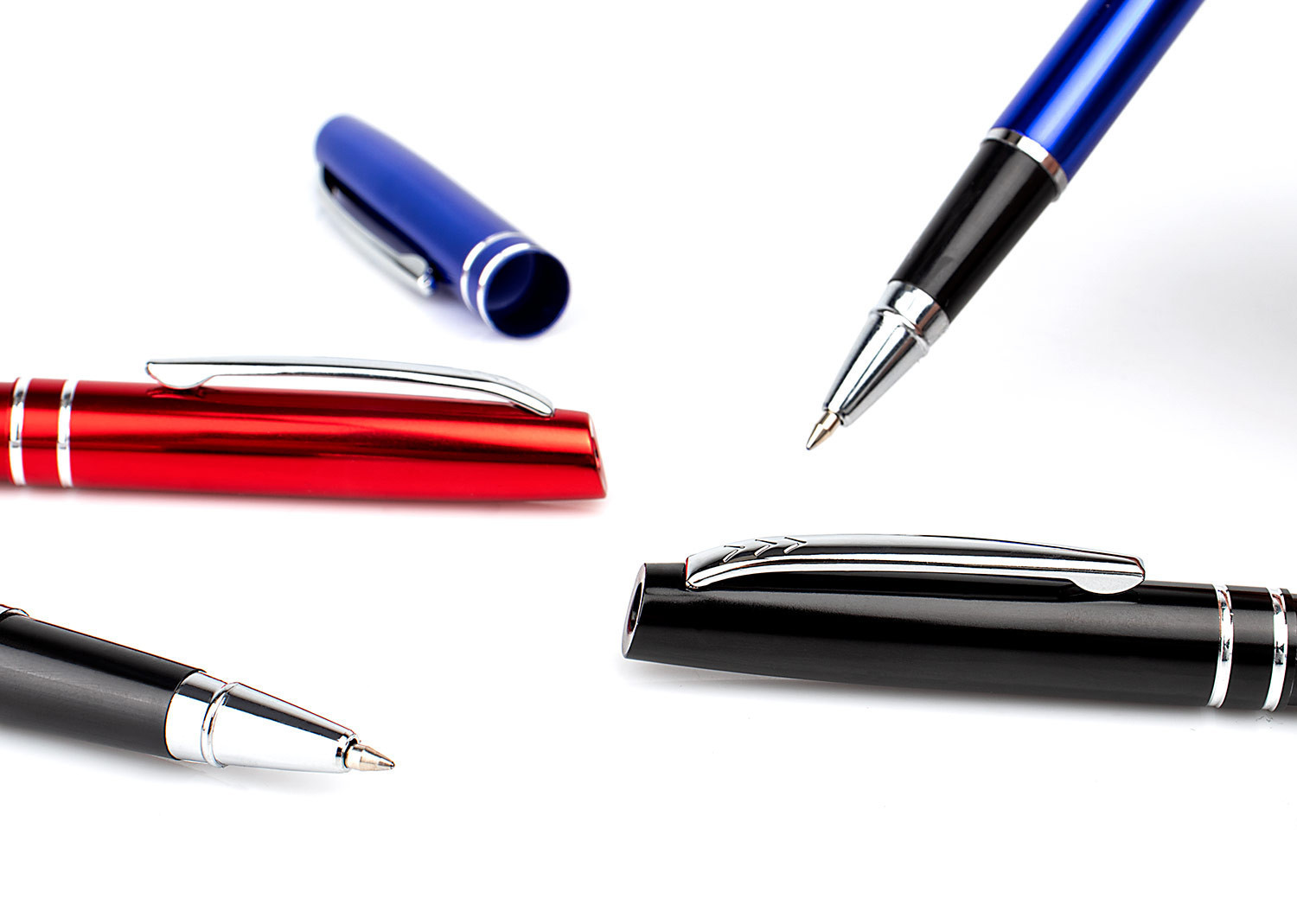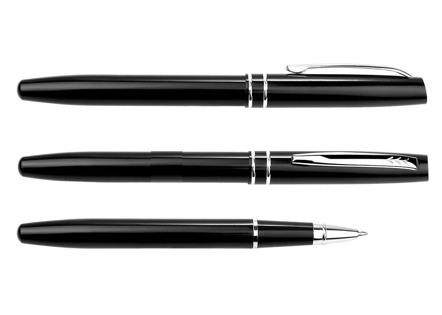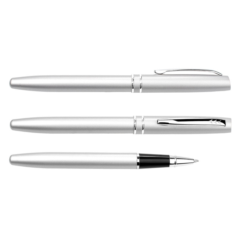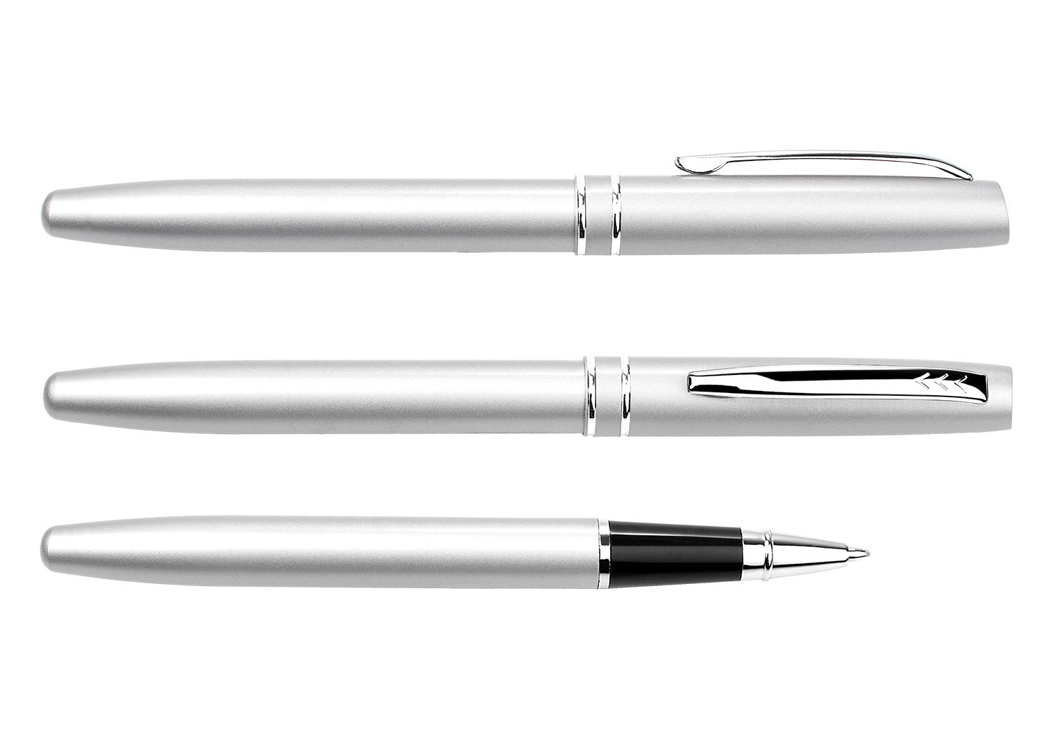 Bolígrafo en Aluminio color metalizado con tapa a presión, clip Metalico, Diseño con anillos metalizados en la mitad.