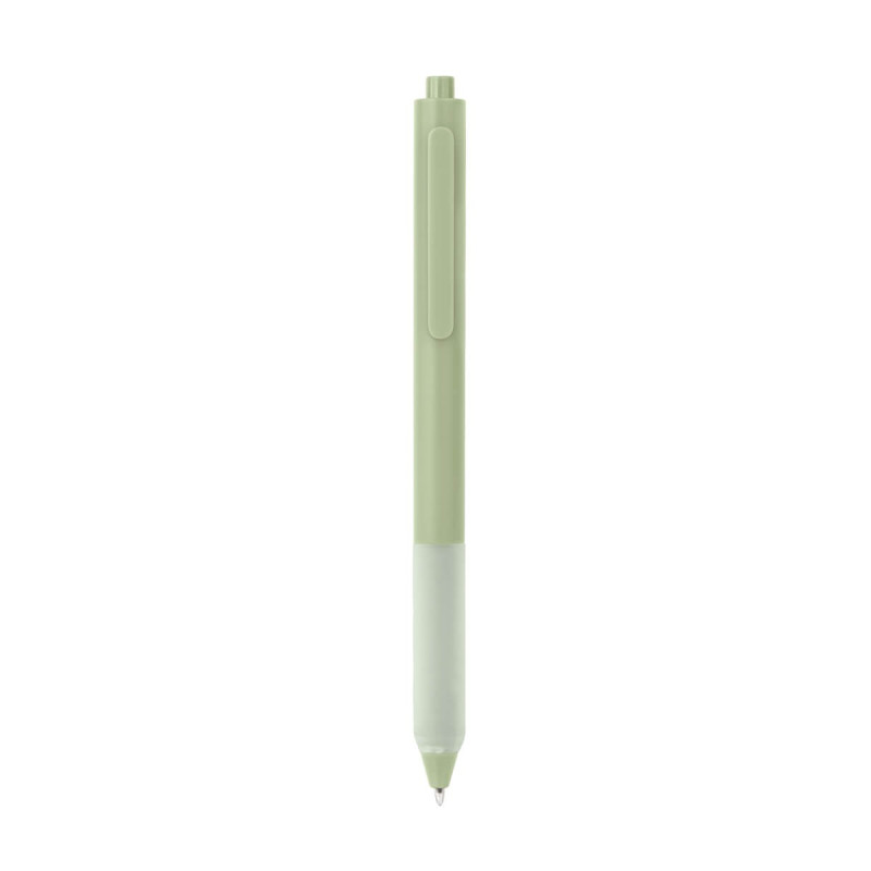 Boligrafo de plastico con grip de silicon antiderrapante. Mecanismo pulsador.