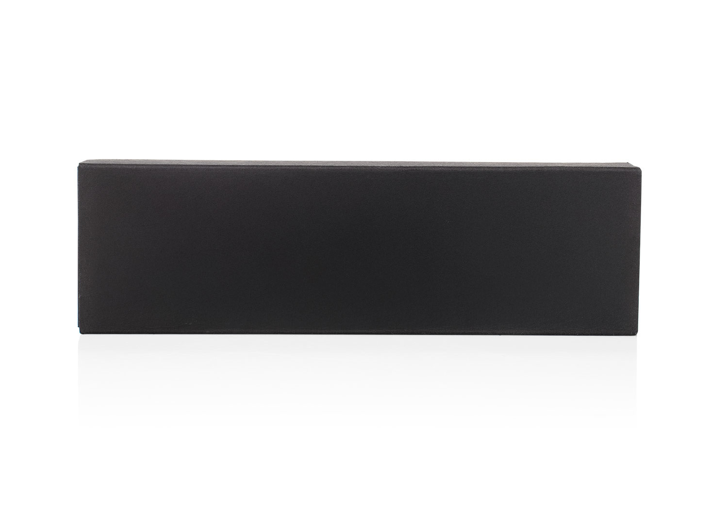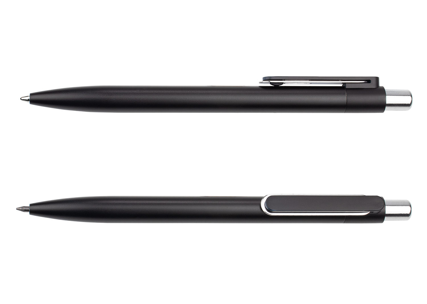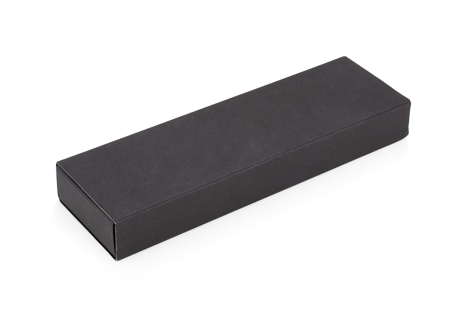 Bolígrafo retráctil de aluminio reciclado, más un lápiz externo de aluminio reciclado empaquetados en caja de cartón negra que se desliza para abrir. (Bolígrafo/Esfero)