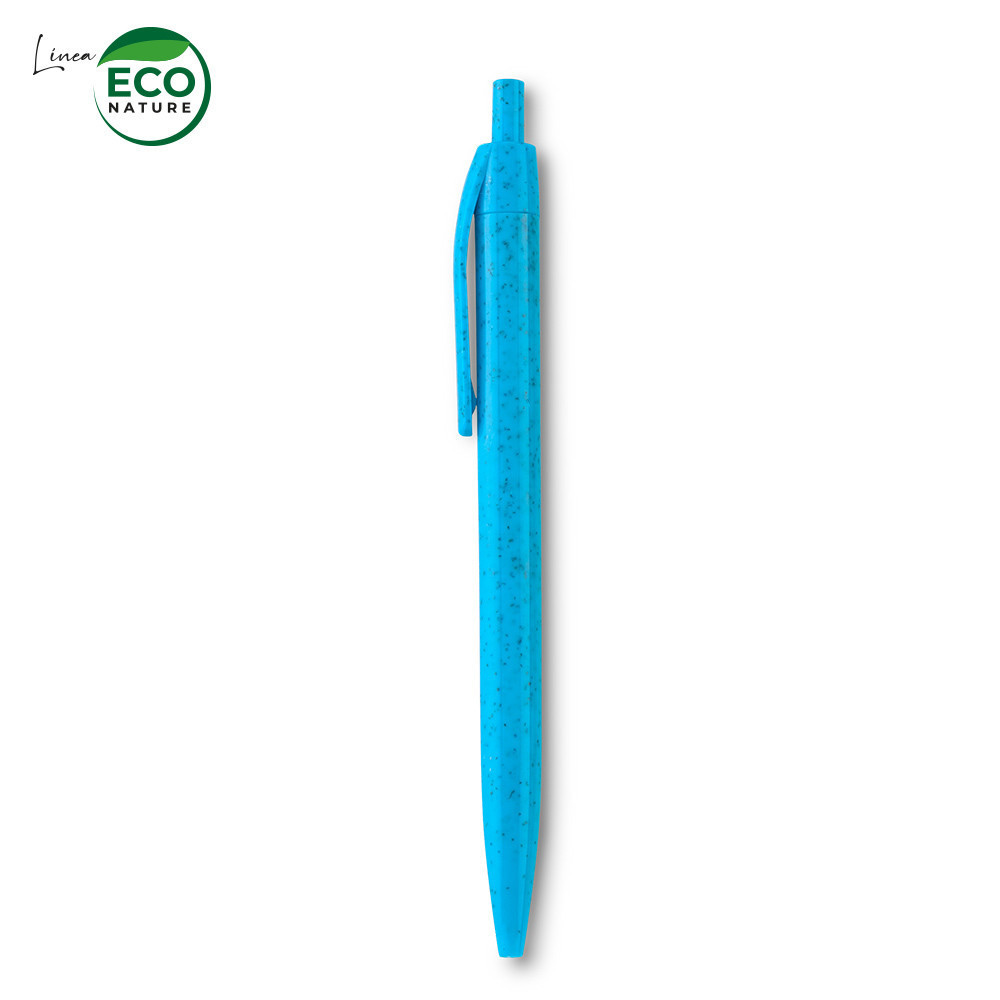 Bolígrafo plástico elaborado con fibra de trigo (50% aprox). El porcentaje de material ecológico tiene un promedio de biodegradabilidad de 2-3 años después del fin de su vida útil. Mecanismo push.