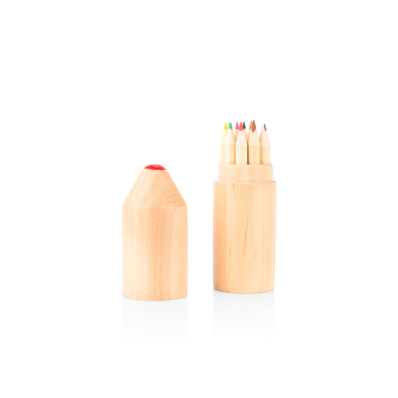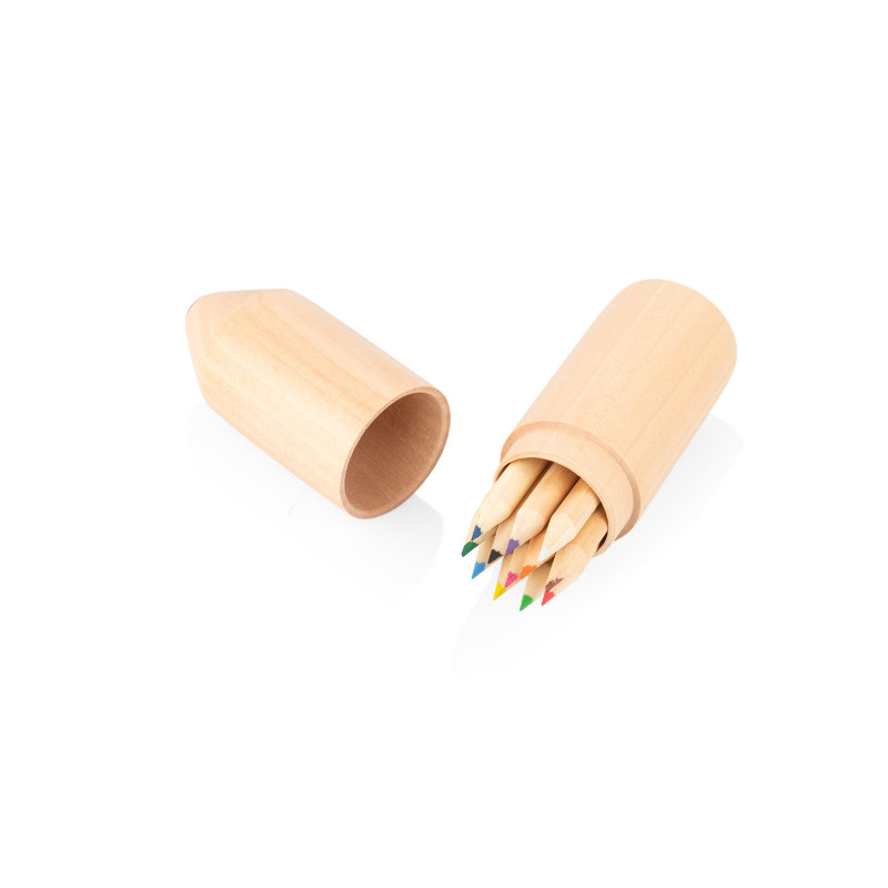 Este juego incluye 12 lápices de colores (8,7 X Ø 0,3) presentados en una caja de madera, ideal para mantenerlos organizados y protegidos. Su formato compacto facilita el transporte y almacenamiento, ofreciendo una solución práctica para actividades creativas dentro y fuera del entorno laboral.