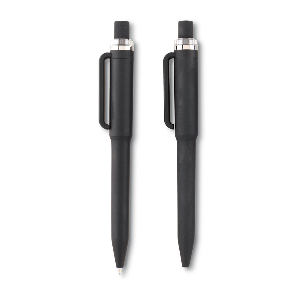 Set de bolígrafo con mecanismo push y portaminas plástico en estuche de cartón. Empaque caja individual.