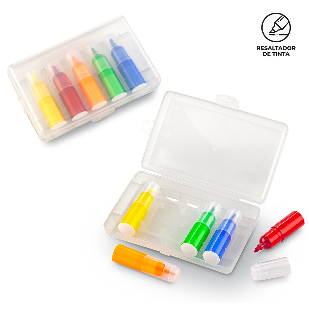 Estuche plástico con 5 resaltadores de tinta. (Colores surtidos).