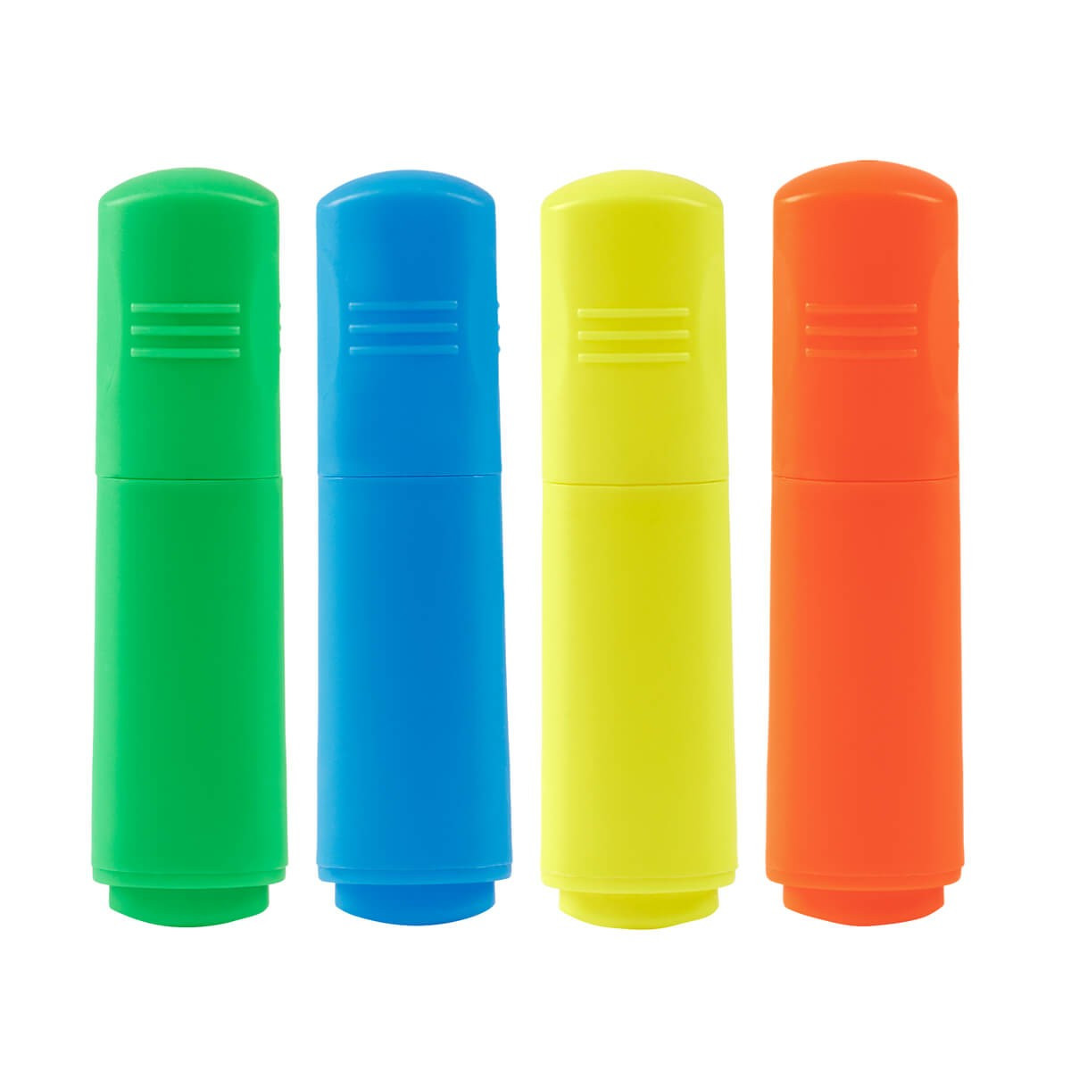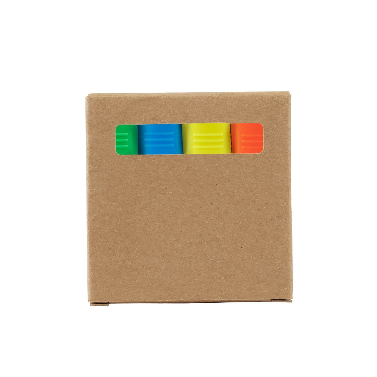 Incluye 4 marcatextos en colores azul, amarillo, verde y naranja, en un practico estuche ecologico con ventana. Diseno compacto, ideal para oficina o escuela.