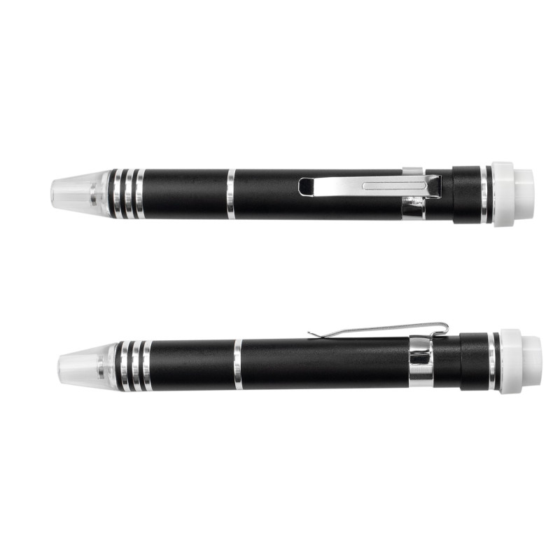 Práctico y versátil herramientero con clip, ideal para llevar siempre a mano. Cuenta con una tapa de presión que asegura el botón de encendido de la linterna integrada, brindando funcionalidad adicional en cualquier situación. En la parte superior incorpora un cierre giratorio que almacena 6 puntas de destornillador intercambiables, las cuales se insertan fácilmente en la punta del herramientero para realizar reparaciones rápidas y precisas. Su diseño compacto y metálico lo convierte en una herramienta indispensable para el día a día.