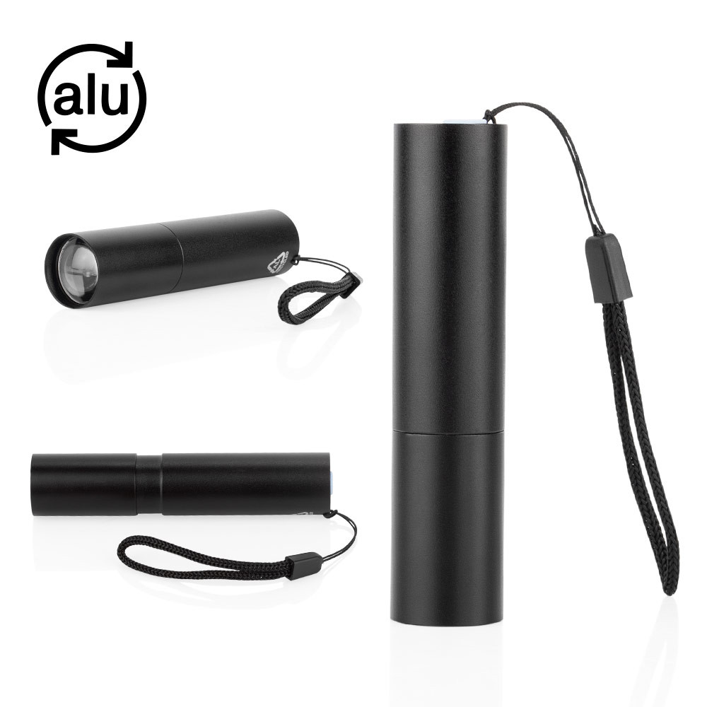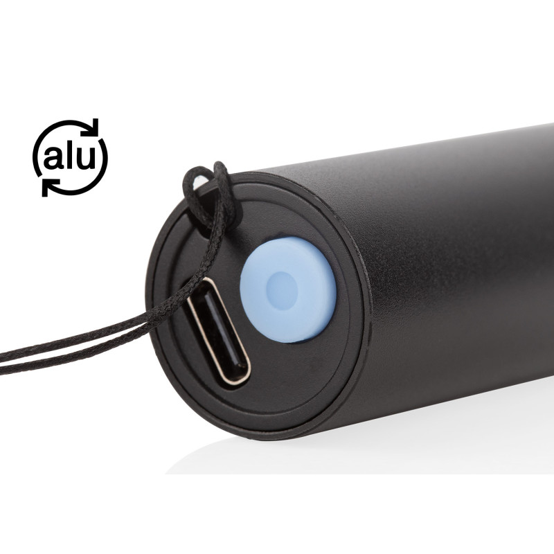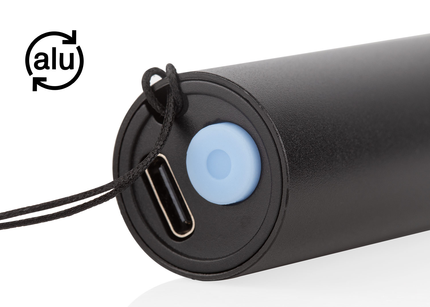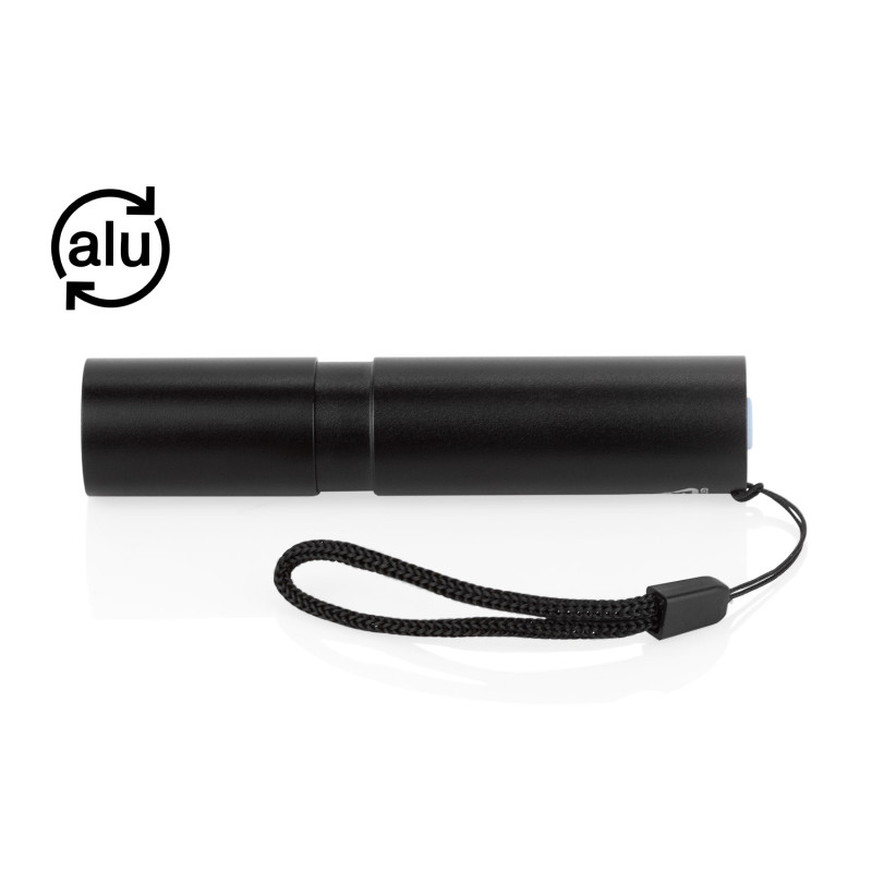 Linterna recargable de alto rendimiento con 110 lúmenes y 3 modos de luz ajustables, que se controlan mediante un botón ubicado junto al puerto de carga. Su diseño incluye función zoom in/out, permitiendo enfocar o ampliar la iluminación deslizando el cuerpo de la linterna. Equipada con batería interna de 400 mAh, cable de carga incluido y práctico cordón para llevarla cómodamente. Ideal para uso diario, actividades al aire libre o emergencias.